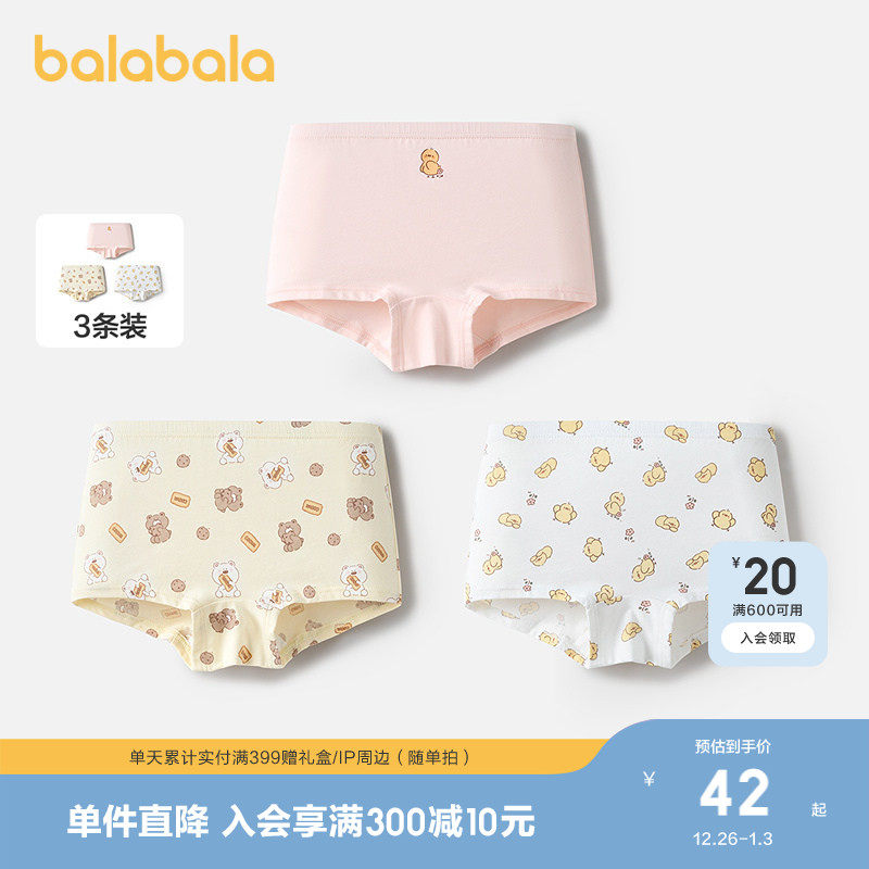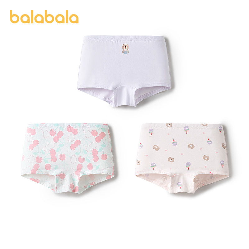 巴拉巴拉女童内裤平角儿童四角短裤抗菌三条装中童小童舒适不夹pp