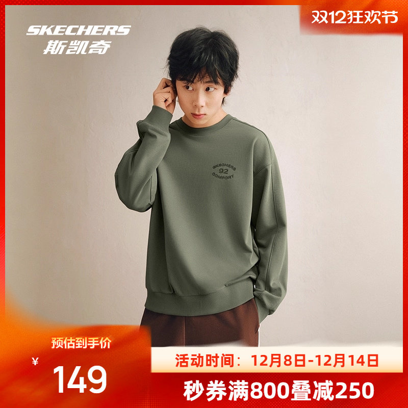 斯凯奇休闲卫衣2025秋季中性款后领织带设计柔软舒适宽松运动保暖