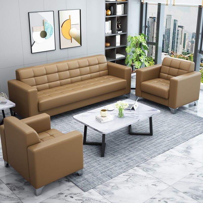 办公沙发茶几组合现代简约商务会客接待小型皮艺办公室三人位沙发