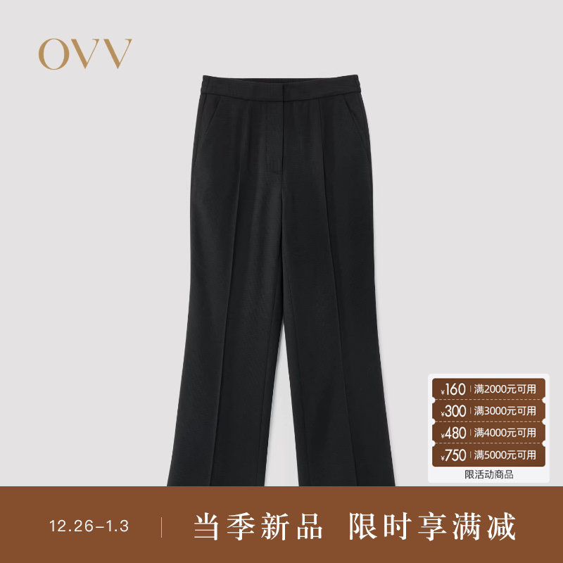 OVV2025秋冬新款女装精纺羊毛立体方格面料松紧腰休闲西裤