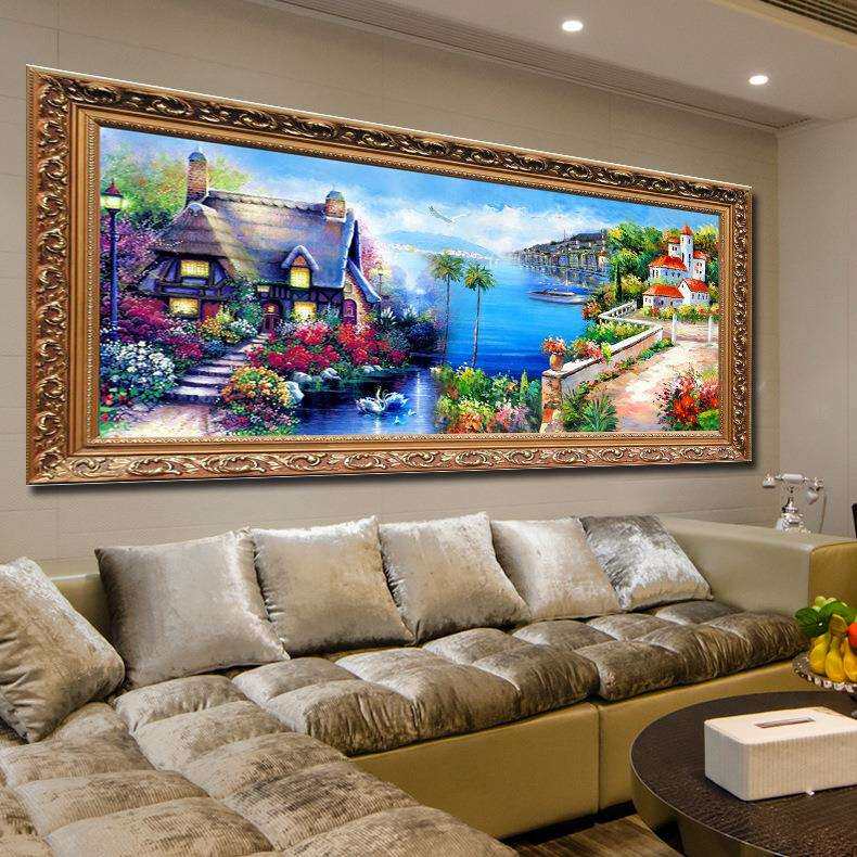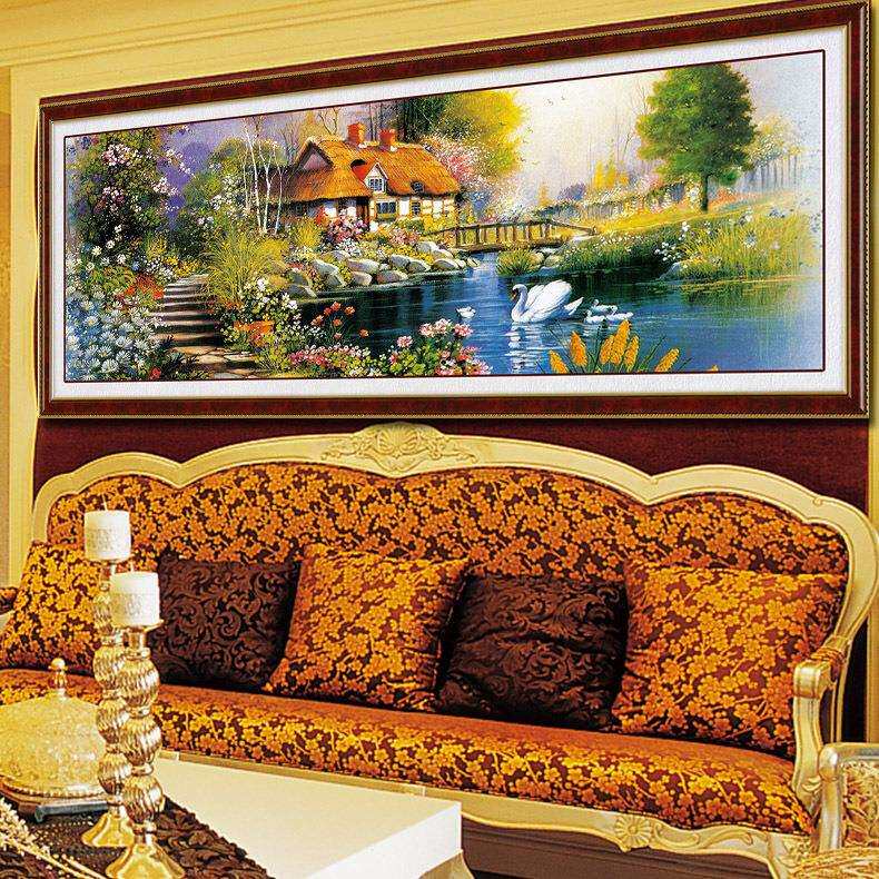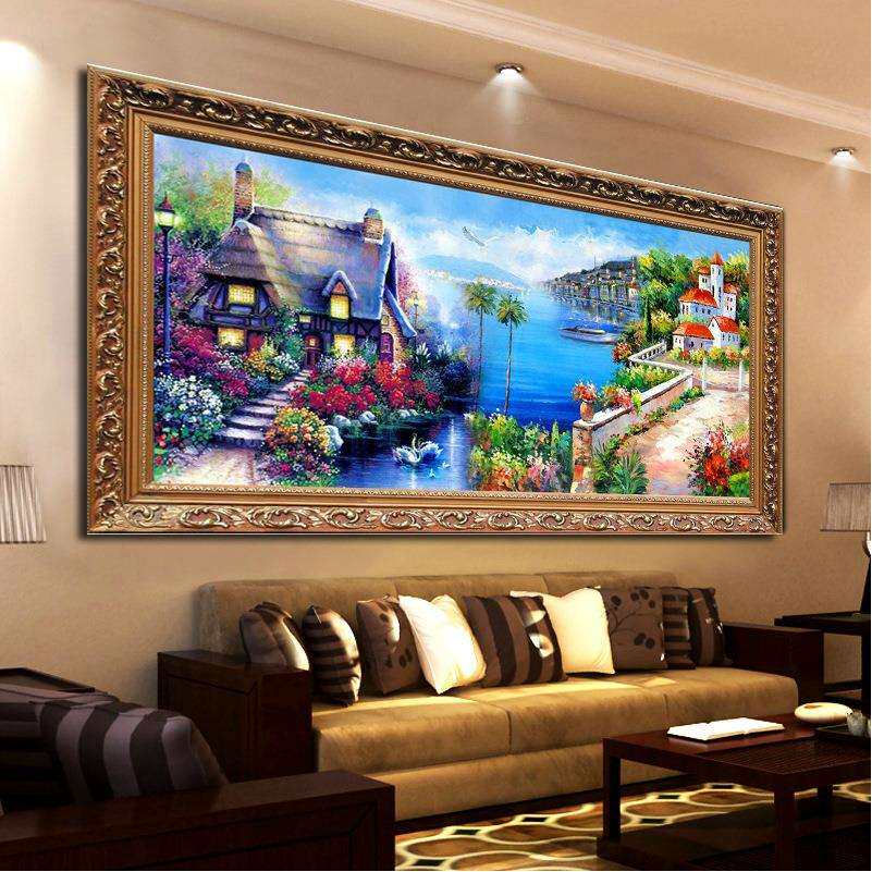 青飞精准地中海风景十字绣海边别墅花园小屋写意小居客厅丝线