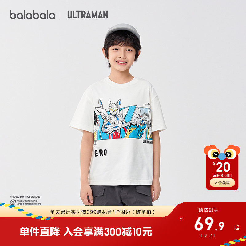 【奥特曼】巴拉巴拉童装男童短袖t恤2025夏季新款上衣儿童速干衣