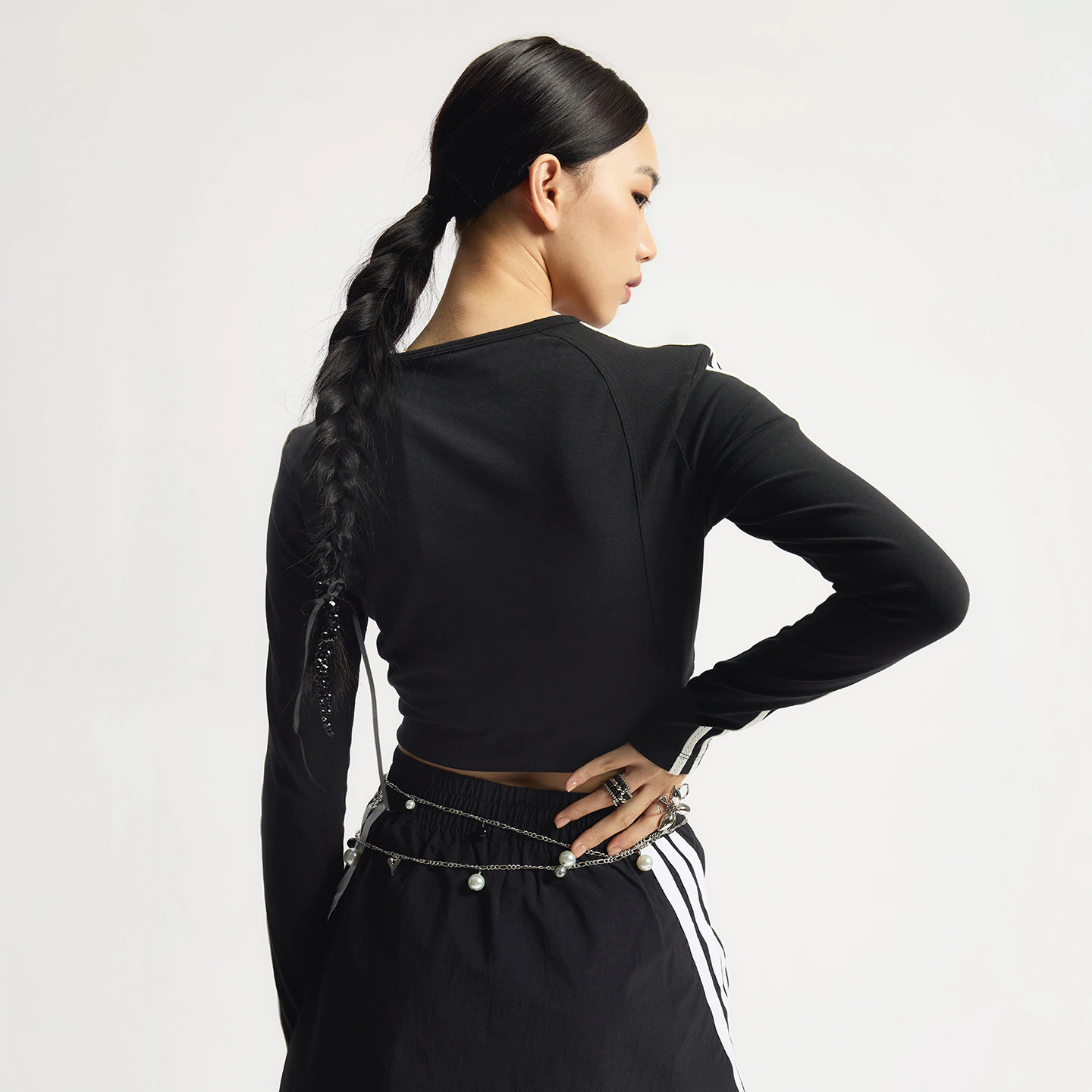 adidas阿迪达斯三条纹长袖女装春秋季舒适户外修身弹力T恤JN0755