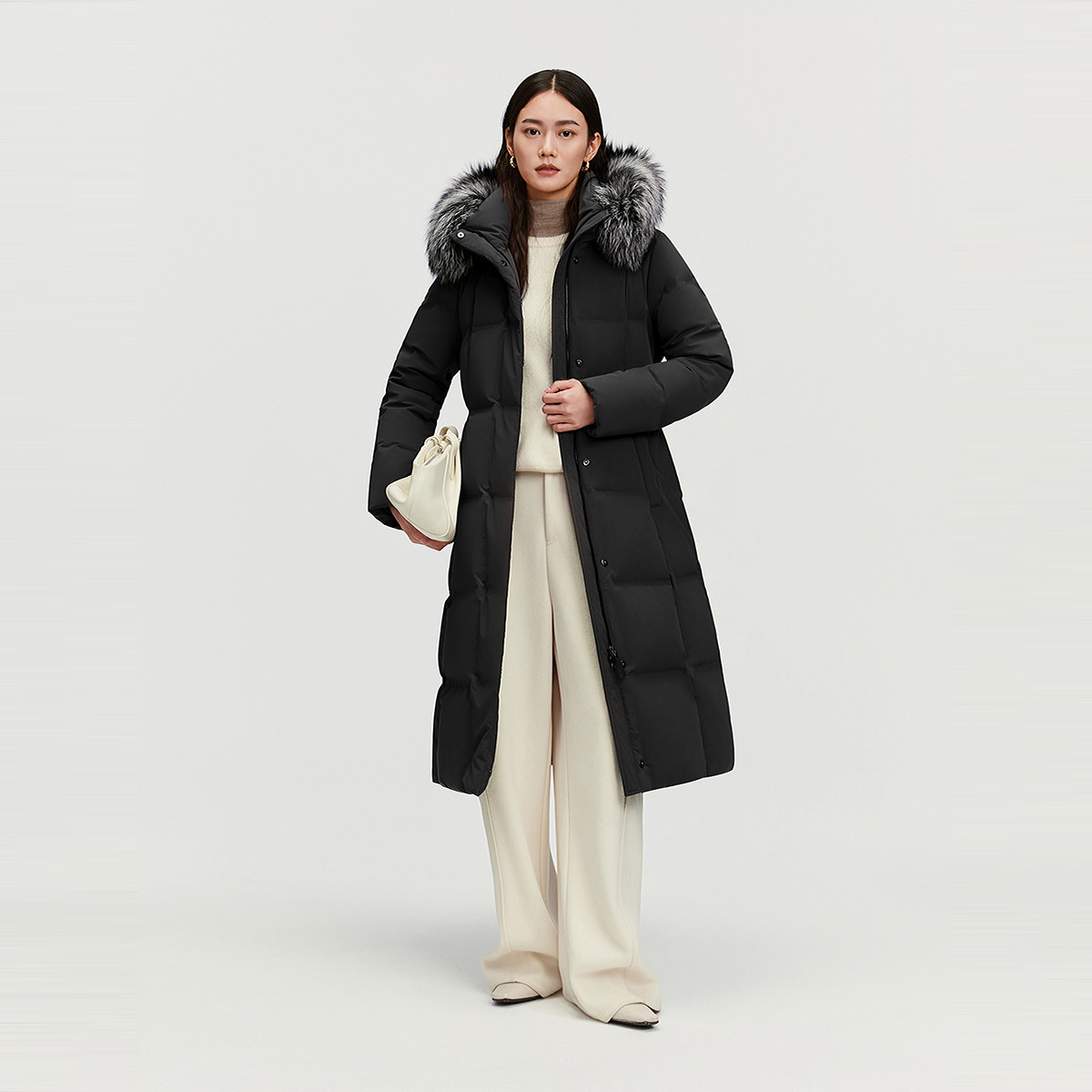 波司登2025新款鹅绒羽绒服女收腰商务风加厚连帽保暖外套银狐毛领