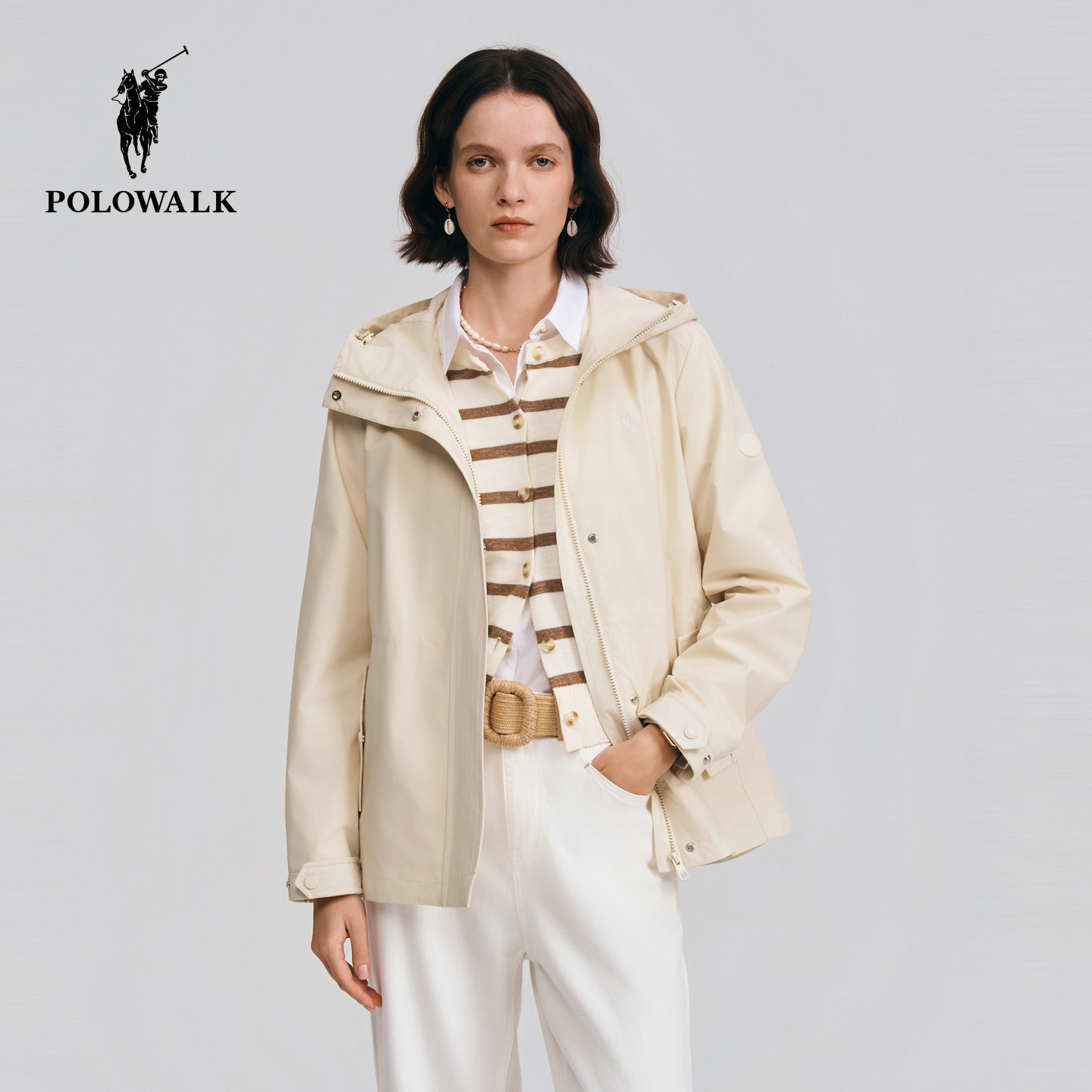 POLOWALK女装外套2026春季新款女士通勤外套连帽收腰显瘦夹克上衣