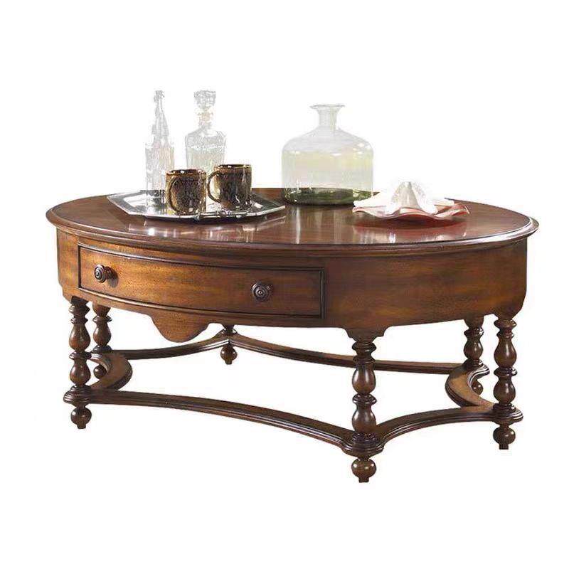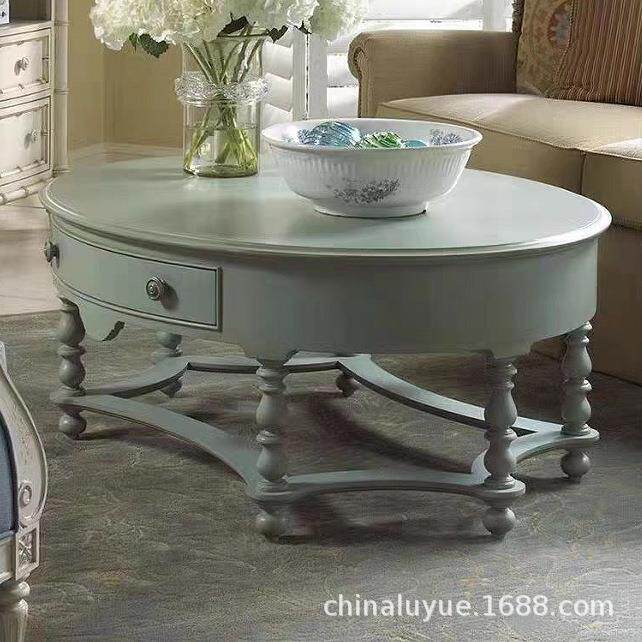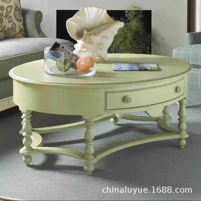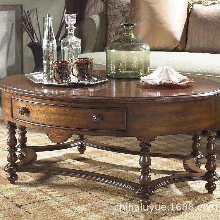 美式乡村实木复古椭圆带抽屉茶几客厅小户型法式茶几沙发边几角几