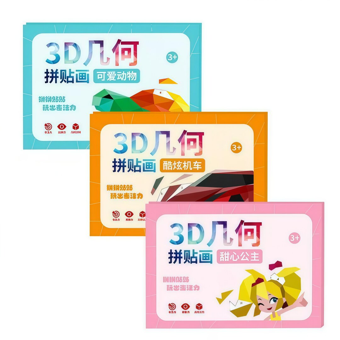 儿童3D几何拼贴画立体益智玩具幼儿园专注力儿童手工diy制作贴纸