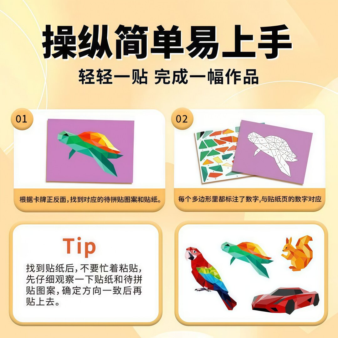 3D几何拼贴画DIY儿童幼儿园手工创意益智贴纸粘贴画专注力提升