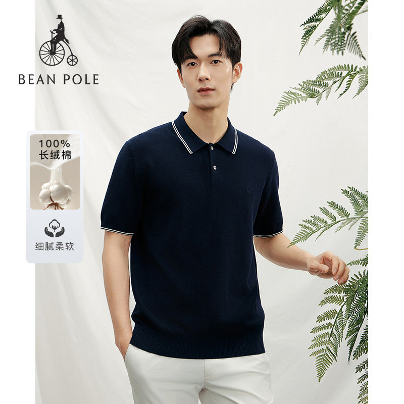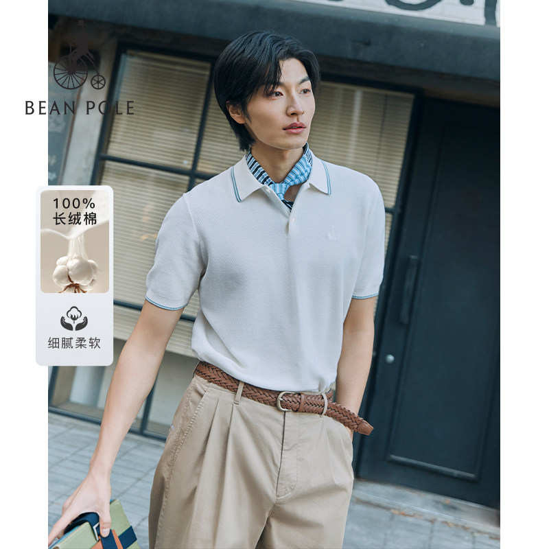 【新品】BEANPOLE滨波 春夏男士商务老钱风全长绒棉撞色POLO衫