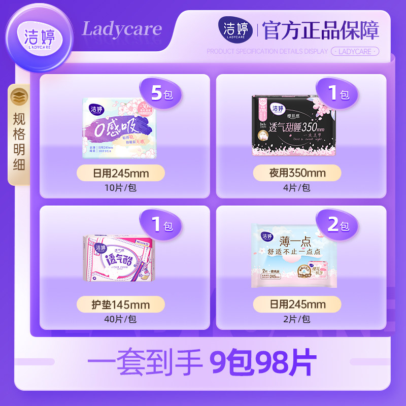 洁婷樱肌感0感吸卫生巾姨妈巾无感日夜组合全周期官方旗舰店正品X