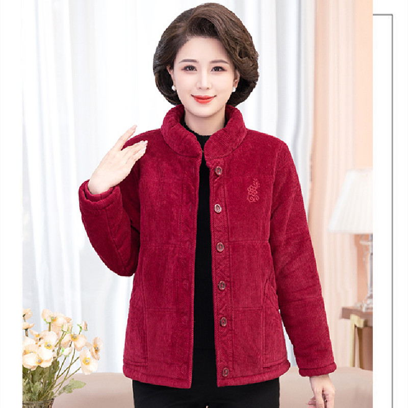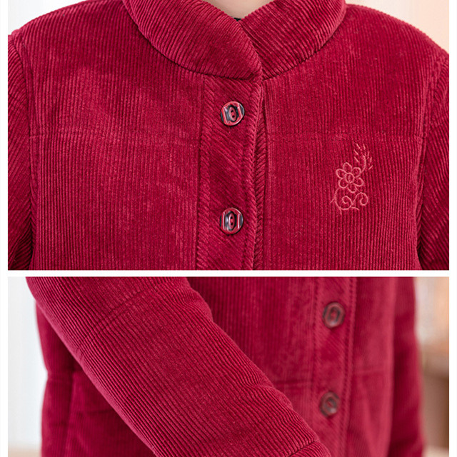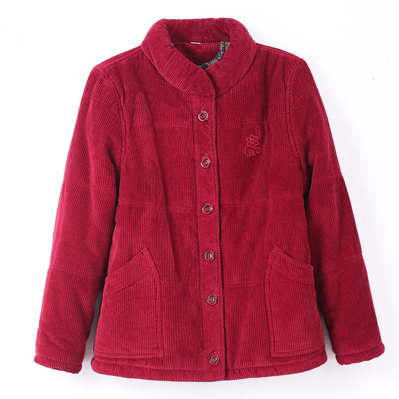 冬春新款秋依中老年全棉加厚灯芯绒棉衣休闲时尚百搭保暖条绒棉服