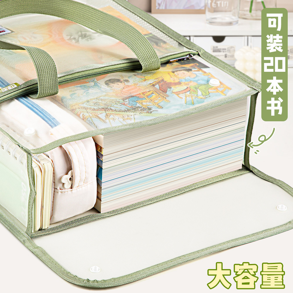 学生拎书补习袋加厚手提袋大容量文件试卷袋翻盖式拉链式透明网纱考试专用文件收纳袋科目袋高颜值书包补课袋