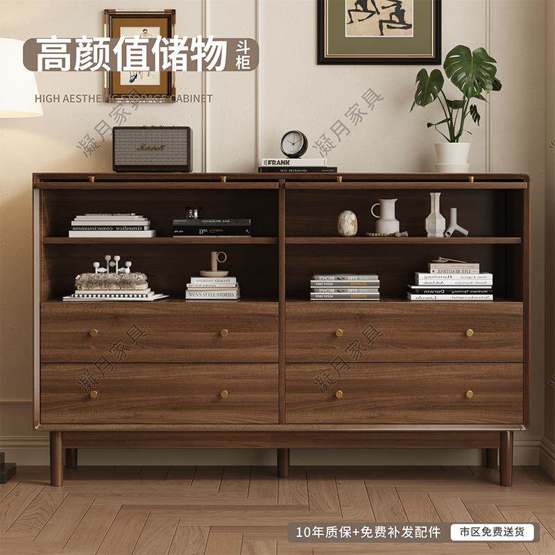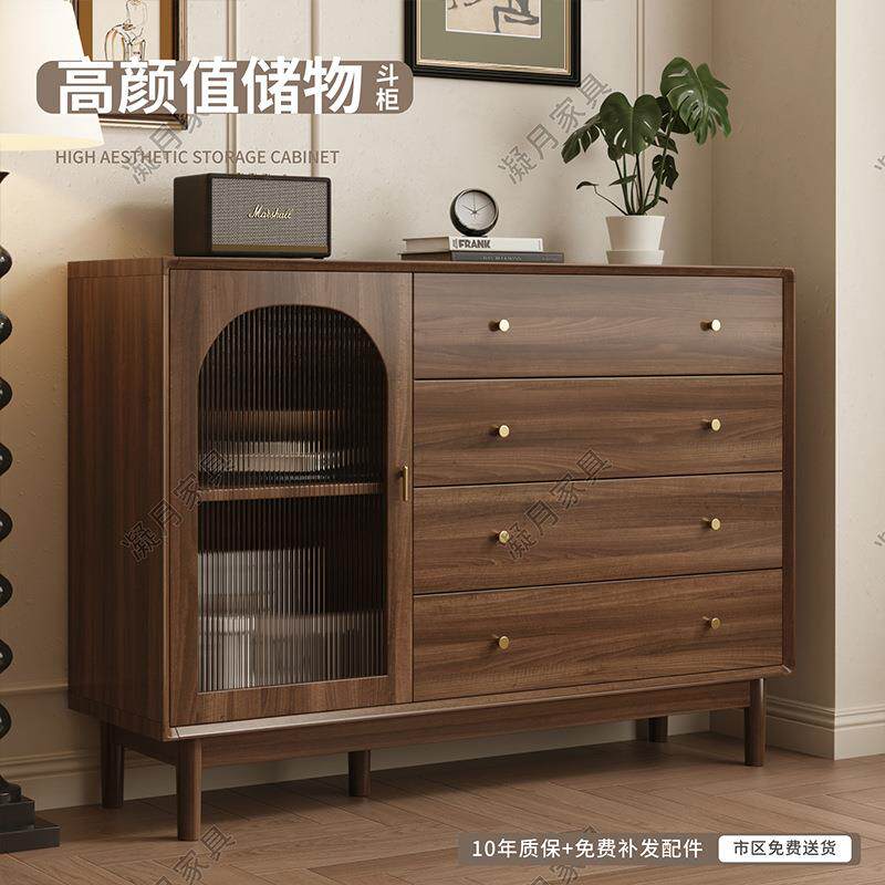 客厅收纳柜斗柜小立柜复古藤编实木腿置物柜卧室靠墙储物柜抽屉柜
