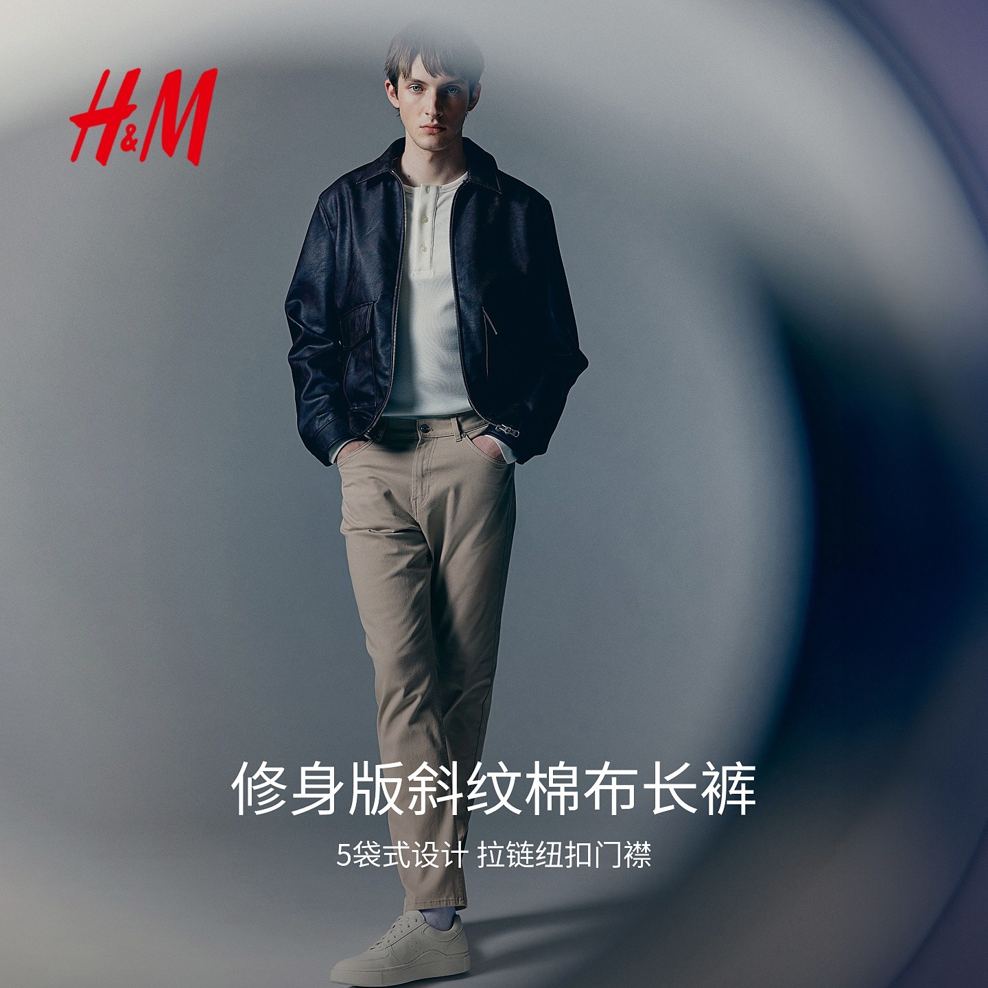 HM男装休闲裤冬季斜纹通勤时尚休闲棉布简约英伦合身长裤1074402