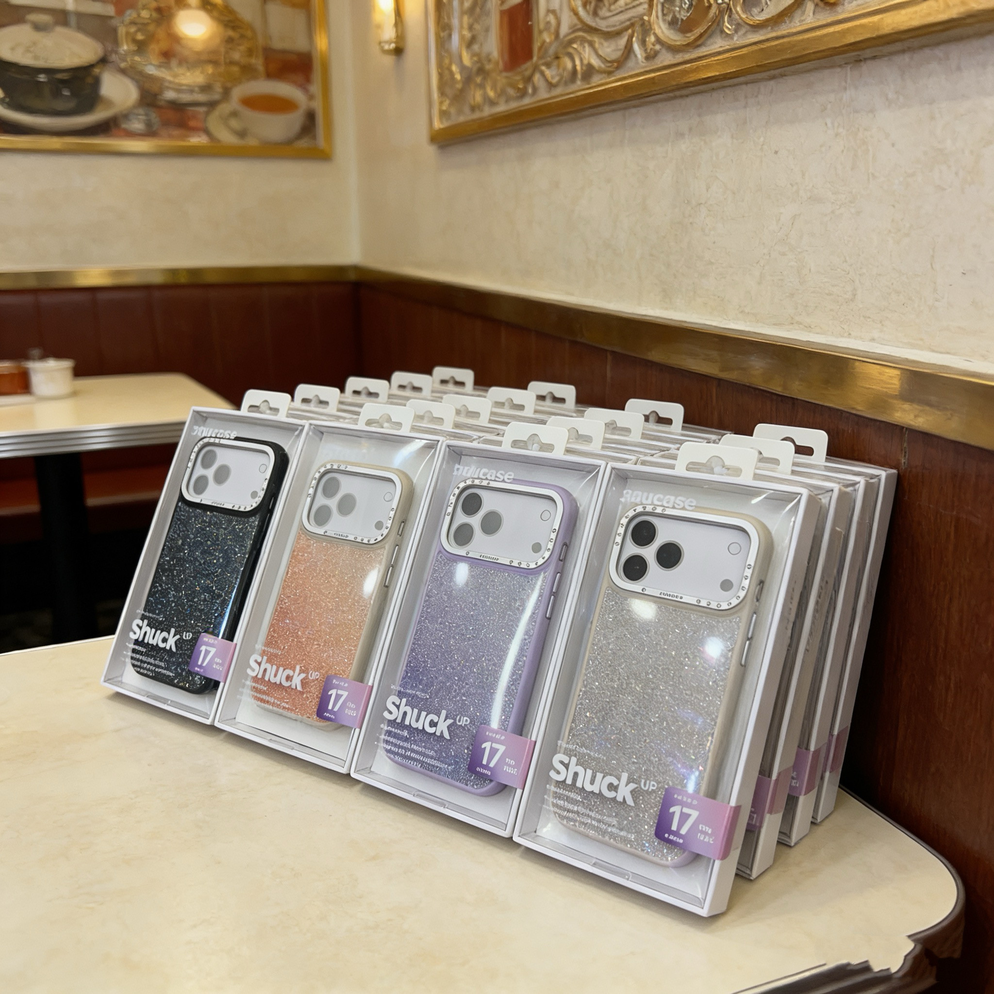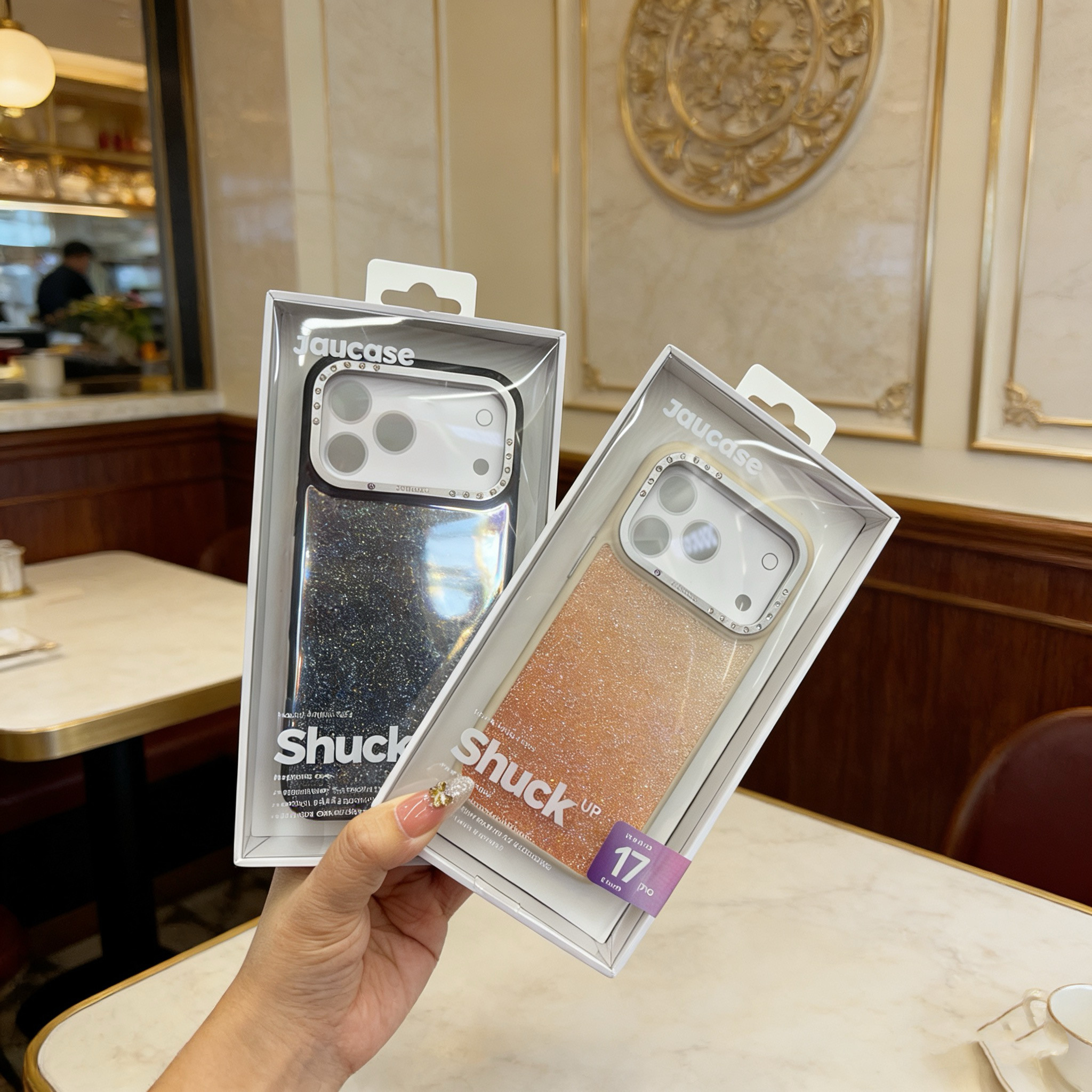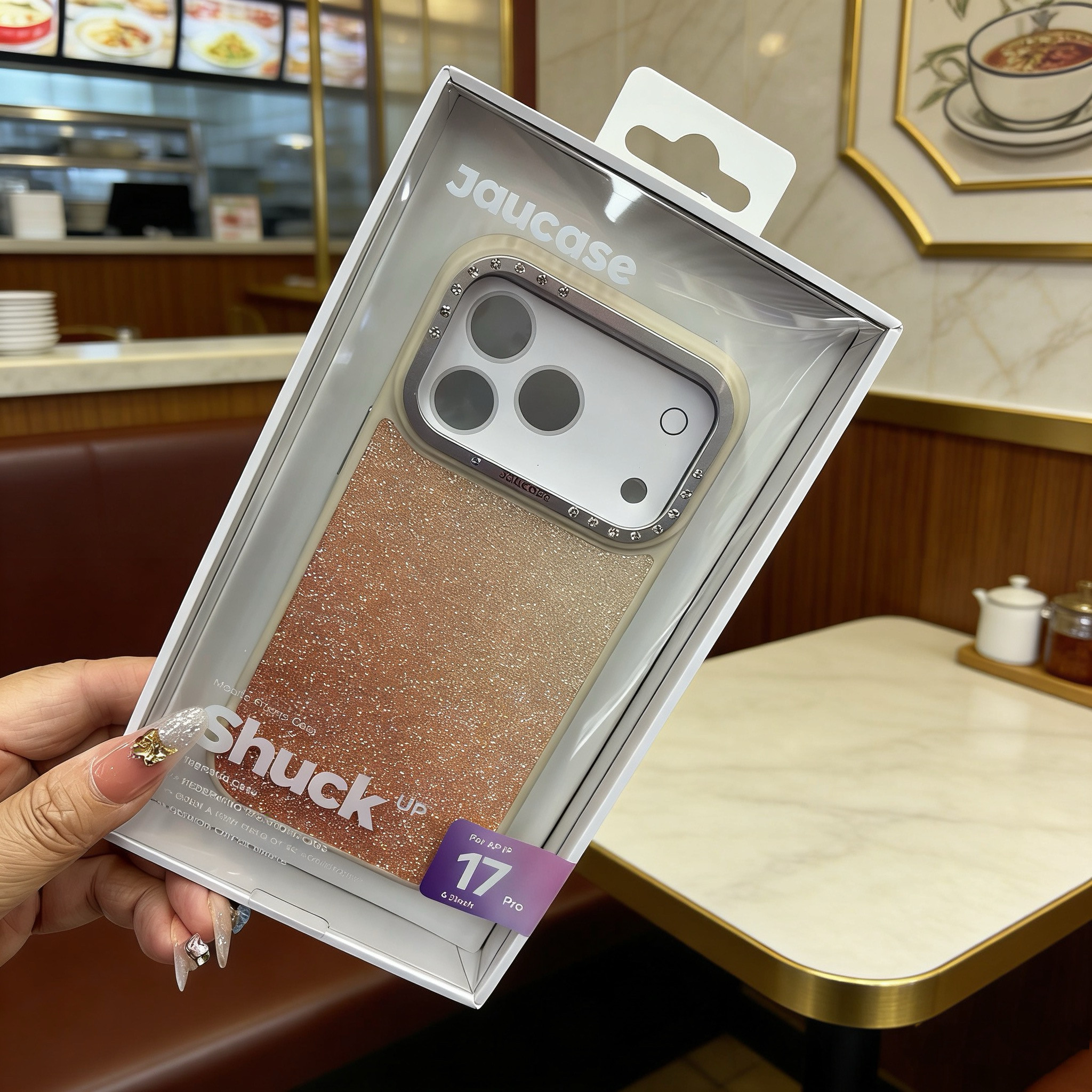 爵卡士JAUCASE轻奢鱼子酱iphone17promax磁吸渐变橙色闪钻手机壳