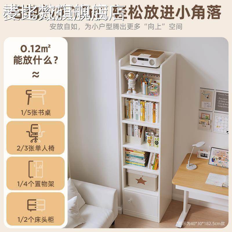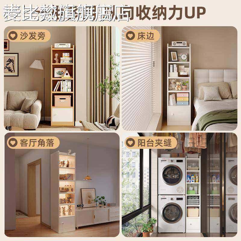 麦比梵30cm窄边柜置物架落地高窄柜子卧室床头书架家用床边多层收纳书柜床笠拉车