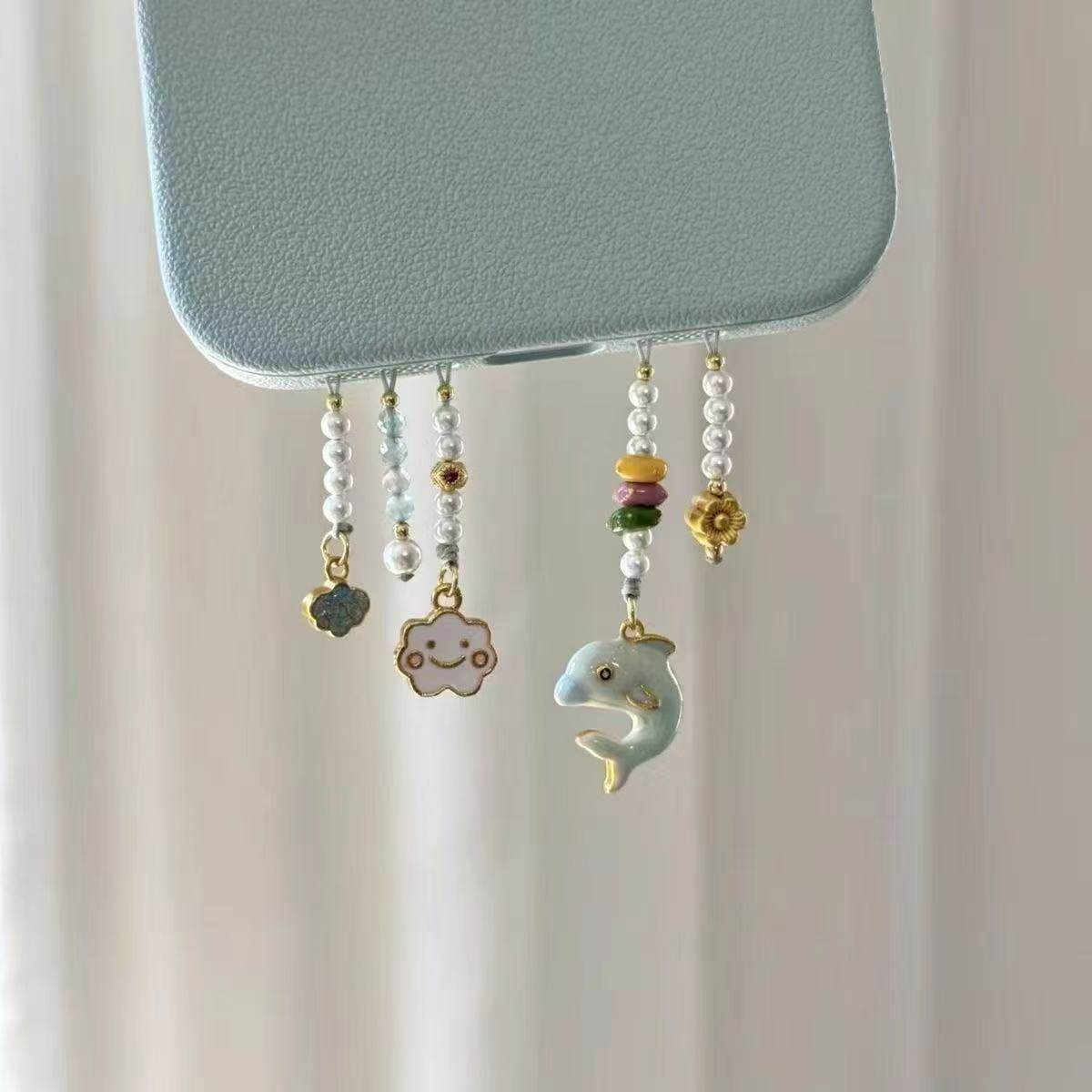 「浪漫回响」国风串珠海豚挂件手机链多孔手机壳配饰包送女友流苏
