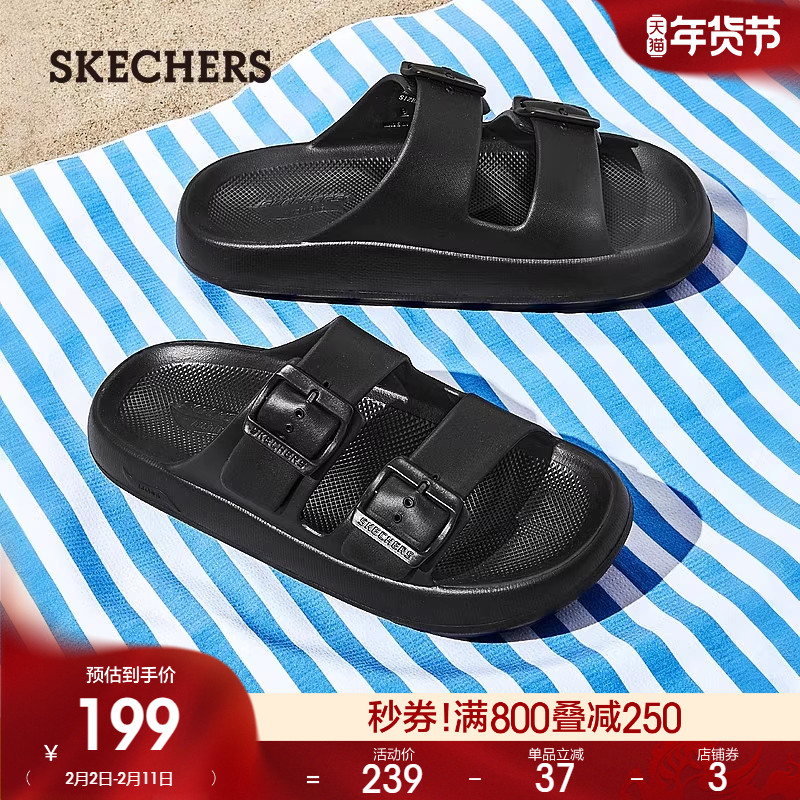 Skechers斯凯奇夏季男鞋休闲舒适轻质透气百搭外穿拖鞋户外凉鞋