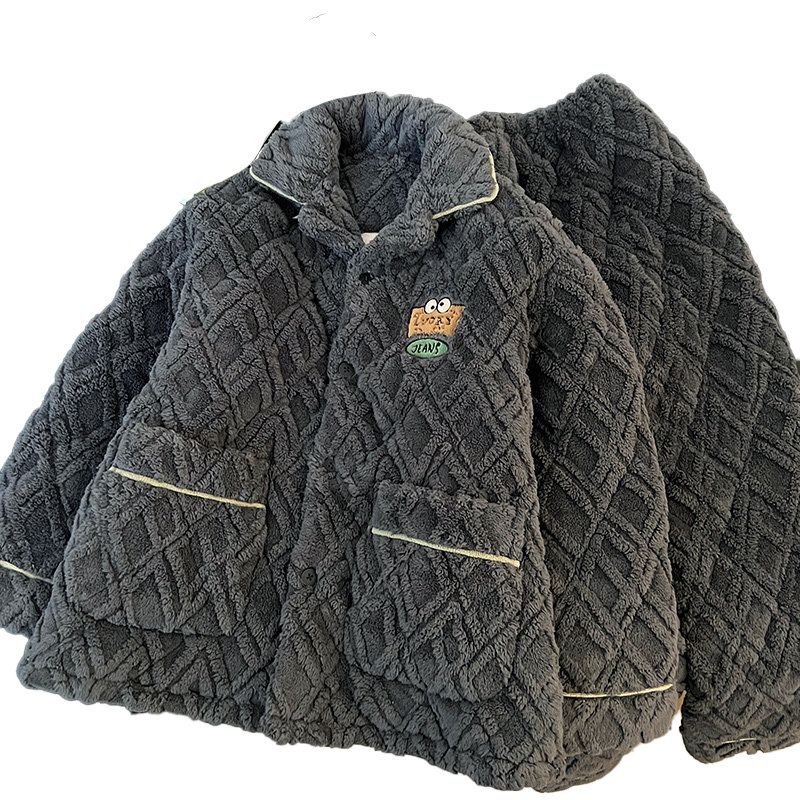 睡衣男款秋冬季珊瑚绒三层夹棉加厚加绒冬天简约青少年大码家居服