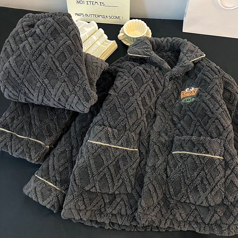 冬季珊瑚绒男士睡衣三层夹棉加厚加绒法兰绒秋冬款家居服保暖套装