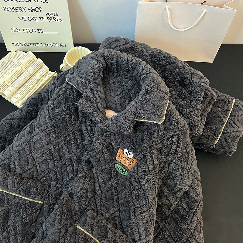 肖战同款猫人暖绒绒家居服半边绒男女2025新款冬季睡衣可外穿加厚