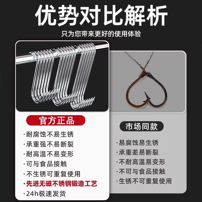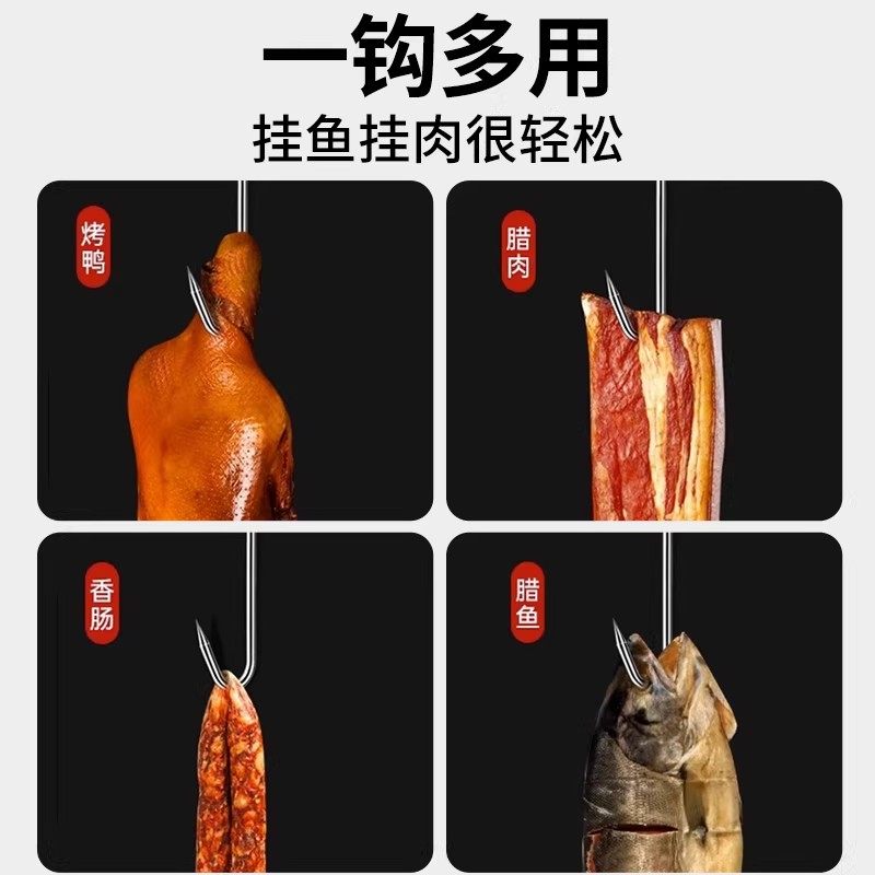 腊肉挂钩S型不锈钢晾晒猪肉钩子烤鸭香肠专用实心加粗大号尖头S勾