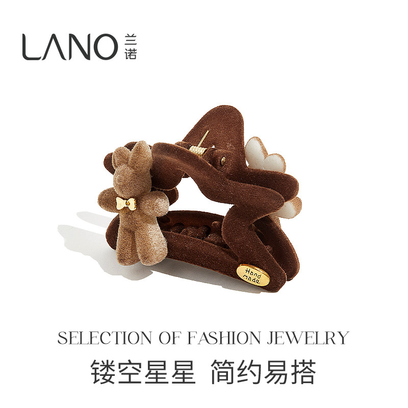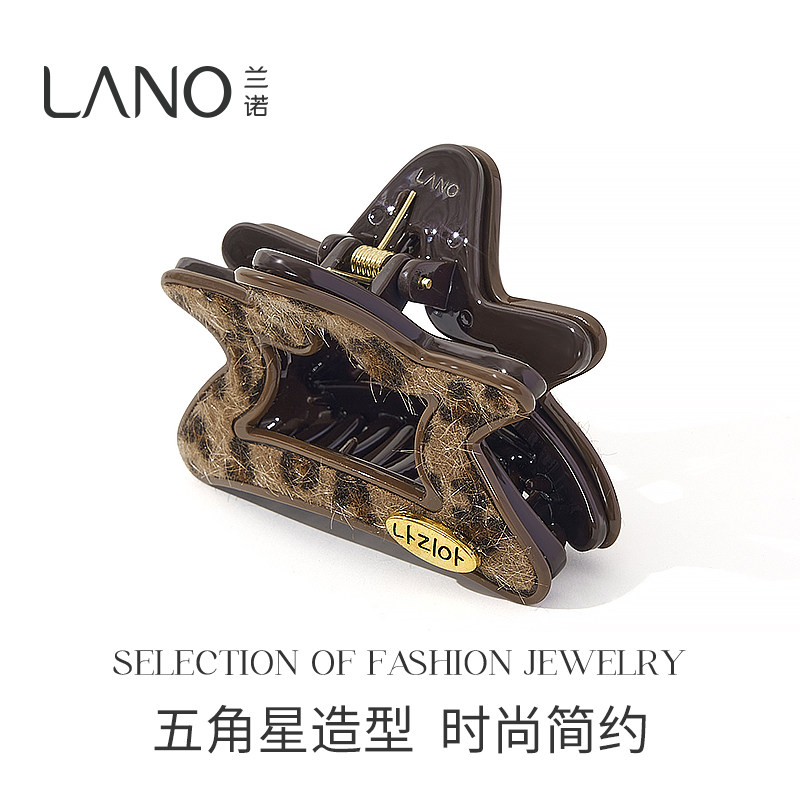 兰诺豹纹星星抓夹女高级感2025新款发量少后脑勺半扎发鲨鱼夹发夹