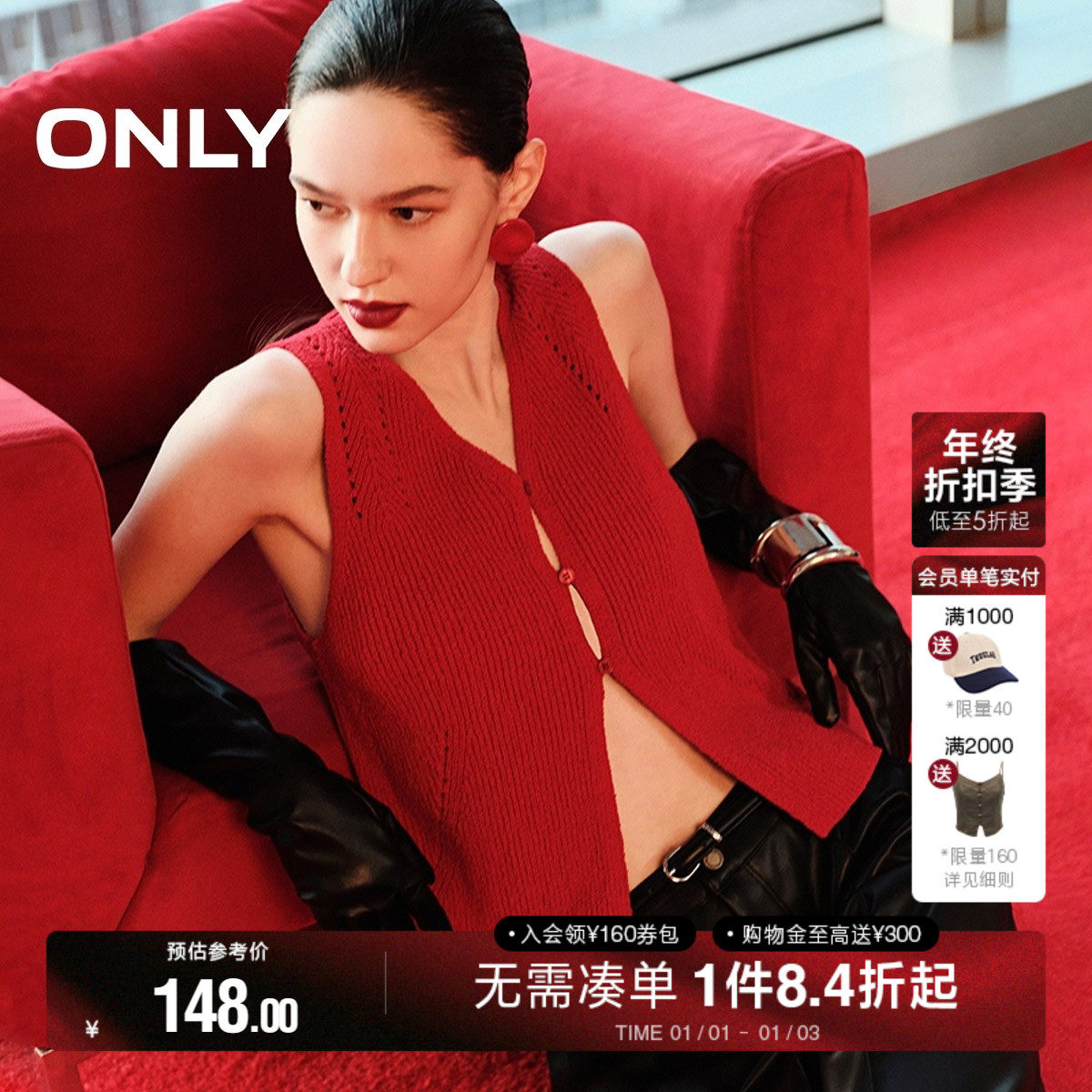 ONLY2025秋季新款复古美式纯色宽松V领纽扣无袖开衫马甲针织衫女