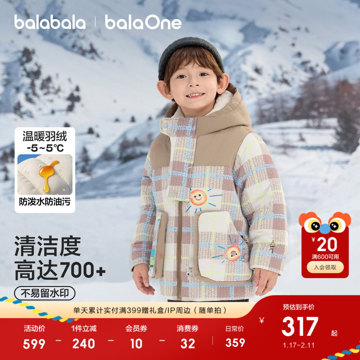 巴拉巴拉宝宝羽绒服冬装男童女童加厚保暖连帽外套萌2025新款上衣