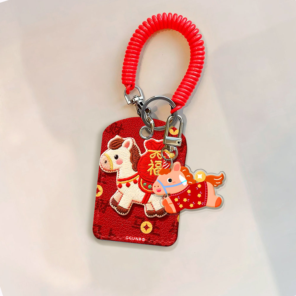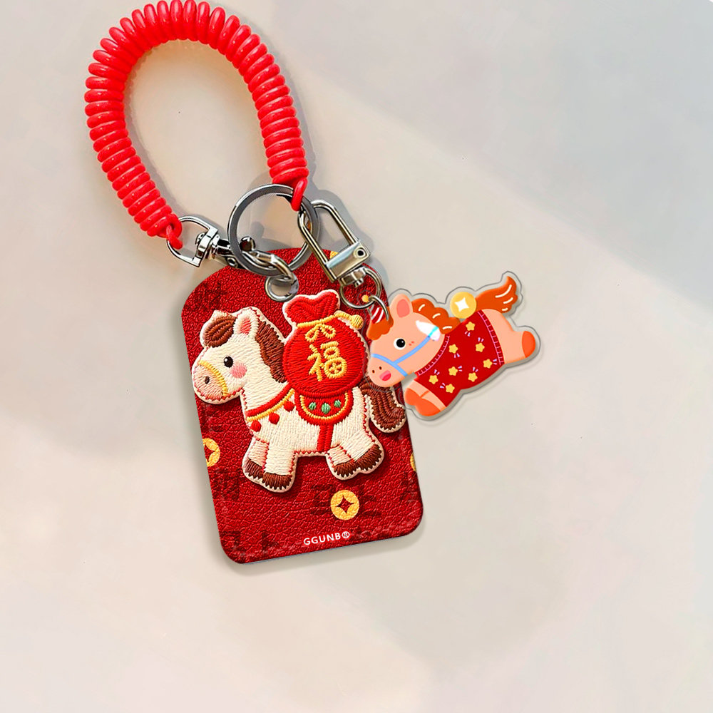 红底驮福袋白马门禁水滴小卡套钥匙扣迷你NFC感应小区公交卡交通电梯IC卡防摔保护套便携方便