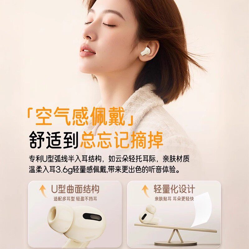 [新色奶杏仁]倍思BS2 lite蓝牙耳机2026无线半入耳适用于小米苹果