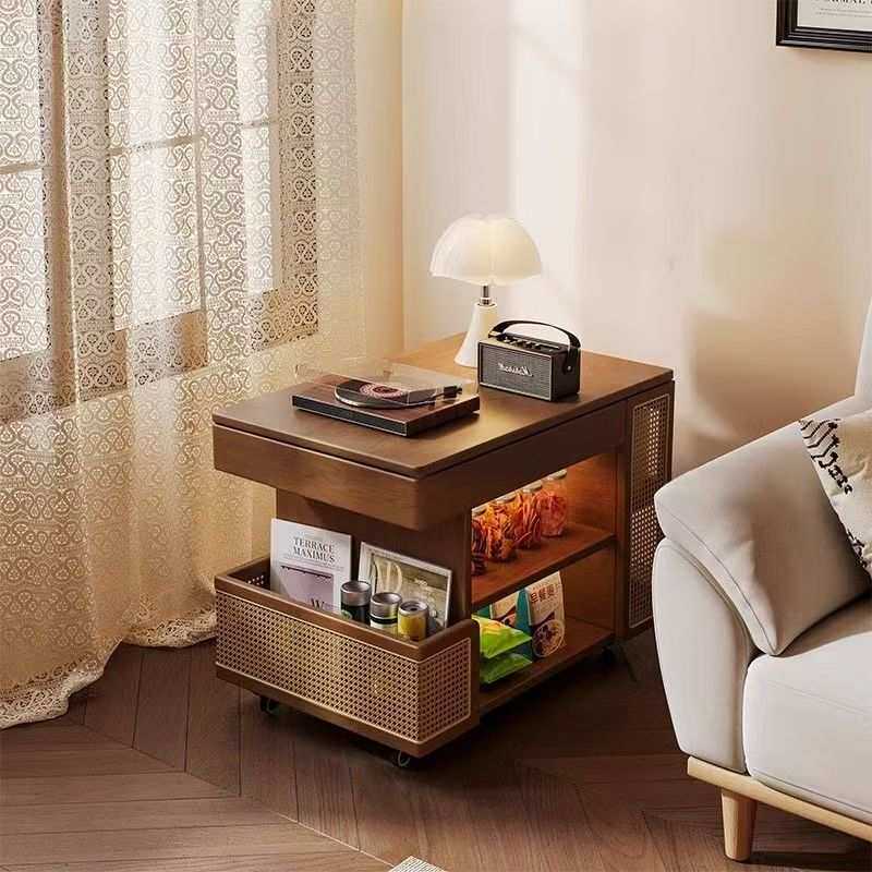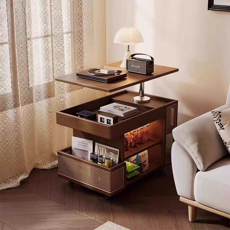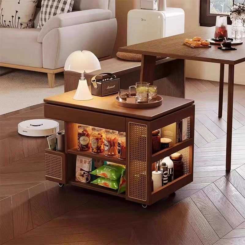 多功能实木移动可升降茶几家用沙发小推车小户型客厅简约边柜旋转
