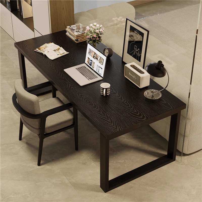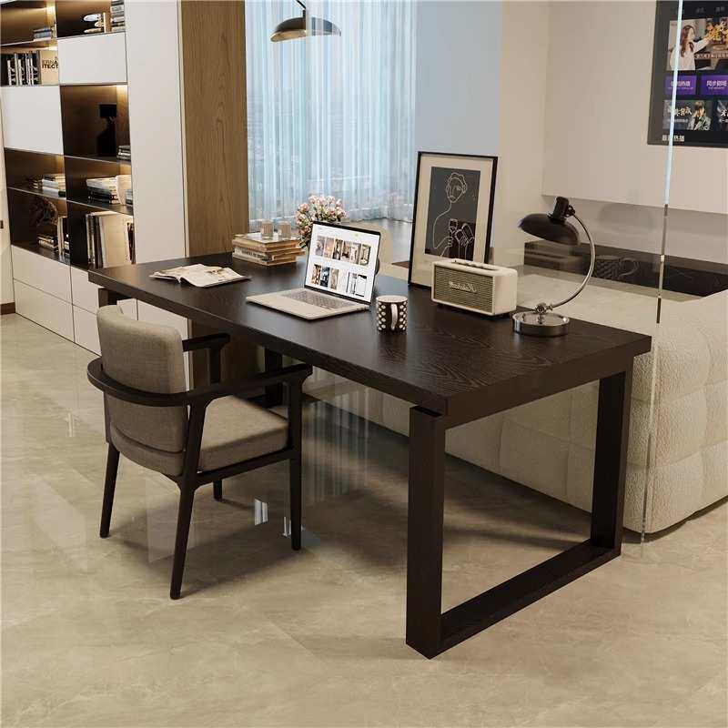 横厅沙发后长条桌黑色全实木客厅大长书桌书房大板桌学习原木桌子