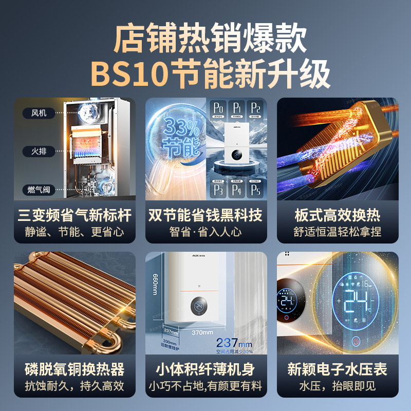 奥克斯燃气壁挂炉天然气家用地暖锅炉暖气片取暖采暖炉热水器两用