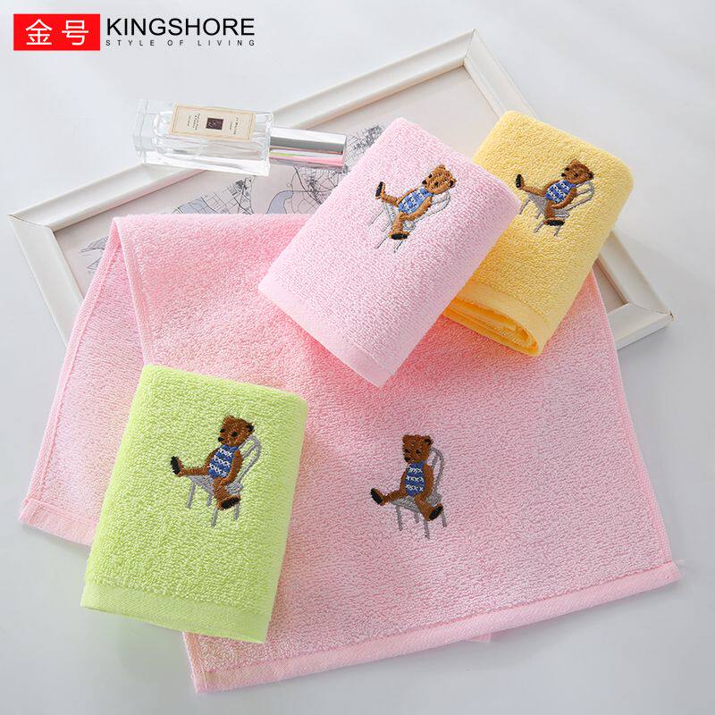 金号纯棉儿童小毛巾卡通可爱小熊洗脸巾柔软成人官方正品不掉毛