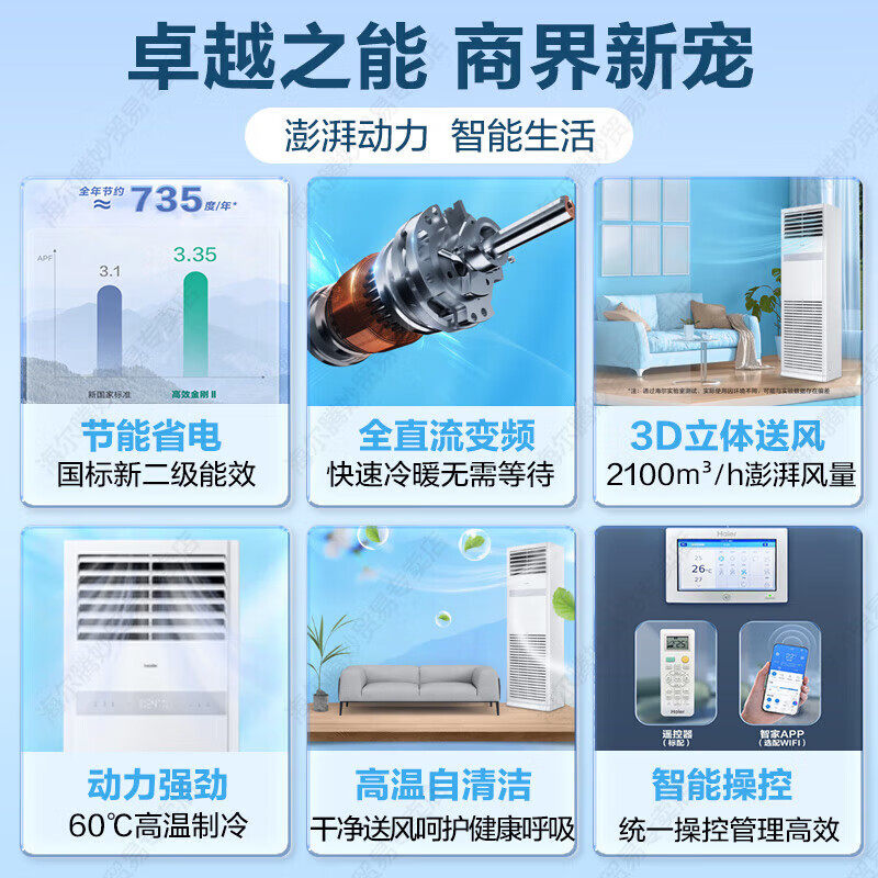 大柜机】海尔出品统帅空调5匹4匹家用商用中央空调变频立式大风量