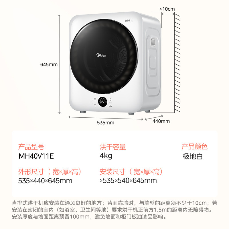 美的烘干机4KG全自动迷你小型家用滚筒式除菌螨防缠绕直排干衣机