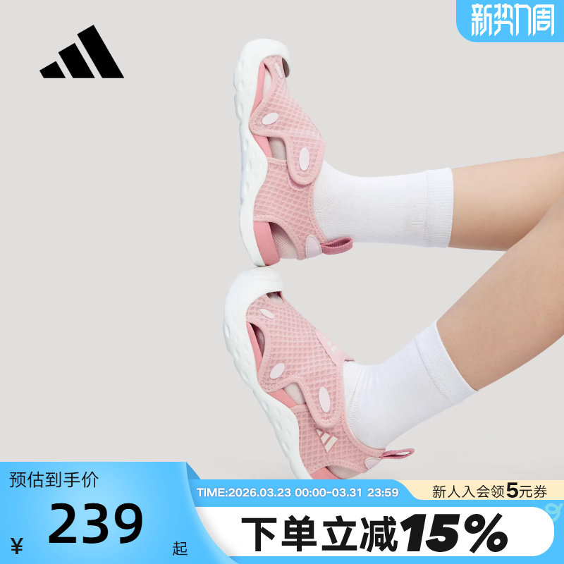 adidas阿迪达斯女小童魔术贴沙滩鞋夏STARSTRIDE粉色凉鞋 KK4567