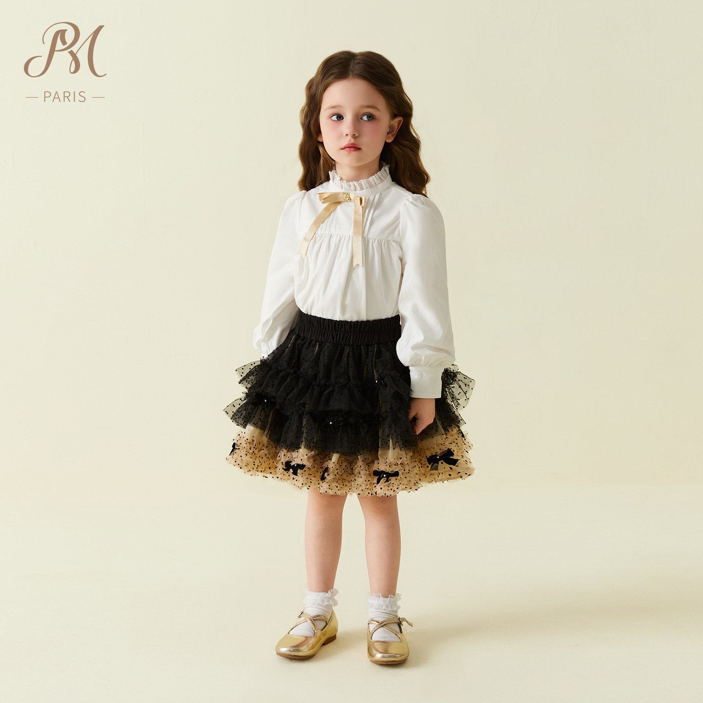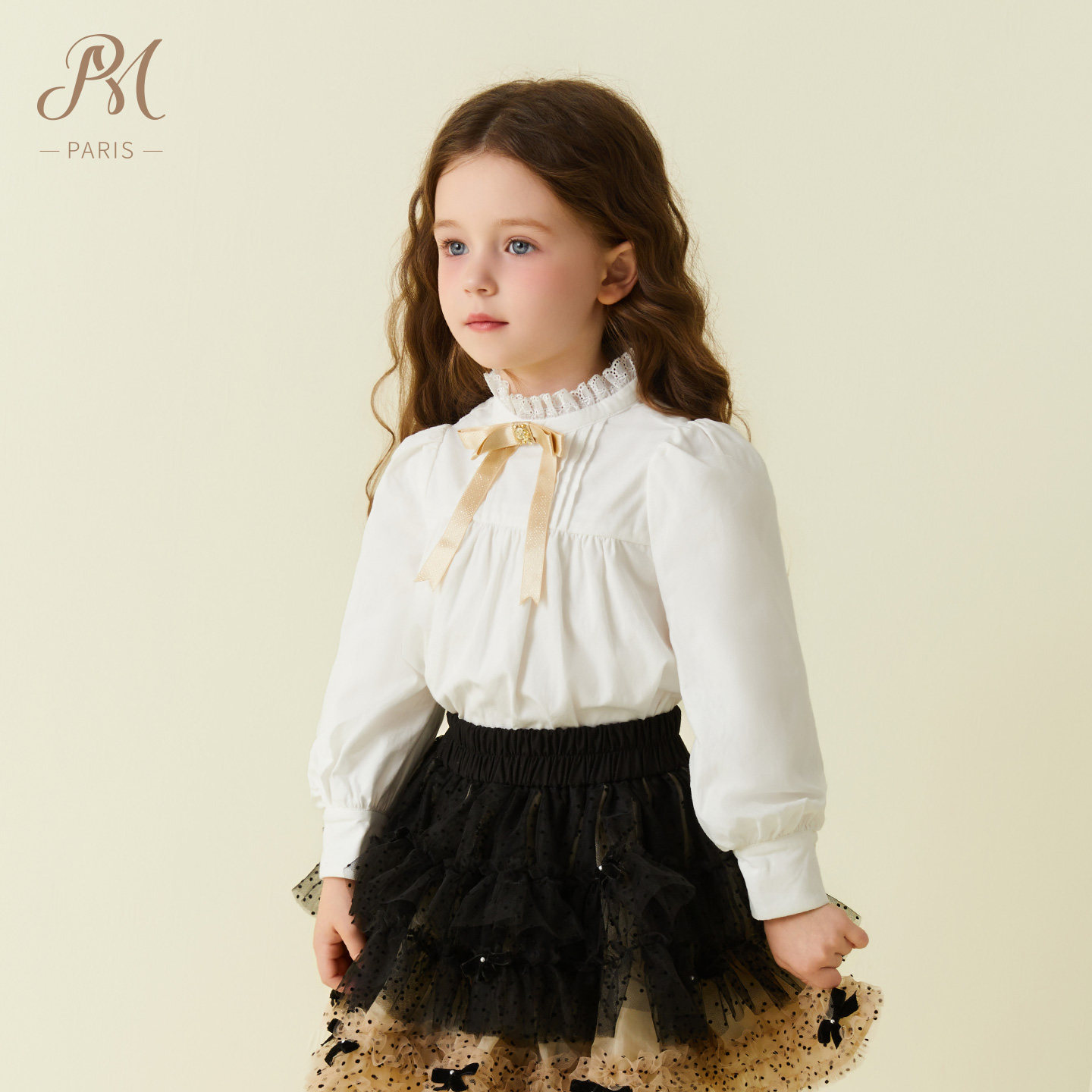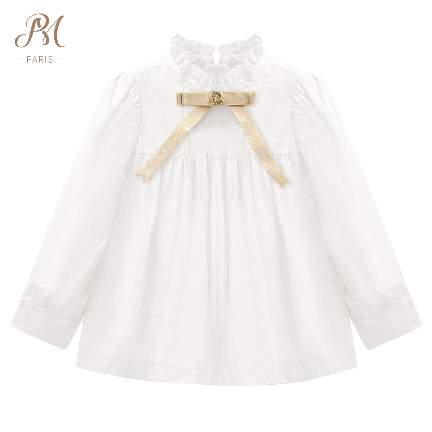 Petite Marguerite小雏菊童装复古法式长袖经典塔克褶小立领衬衫