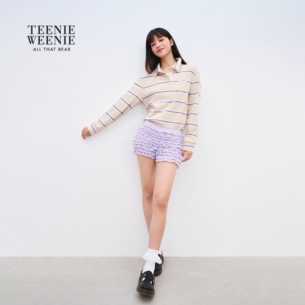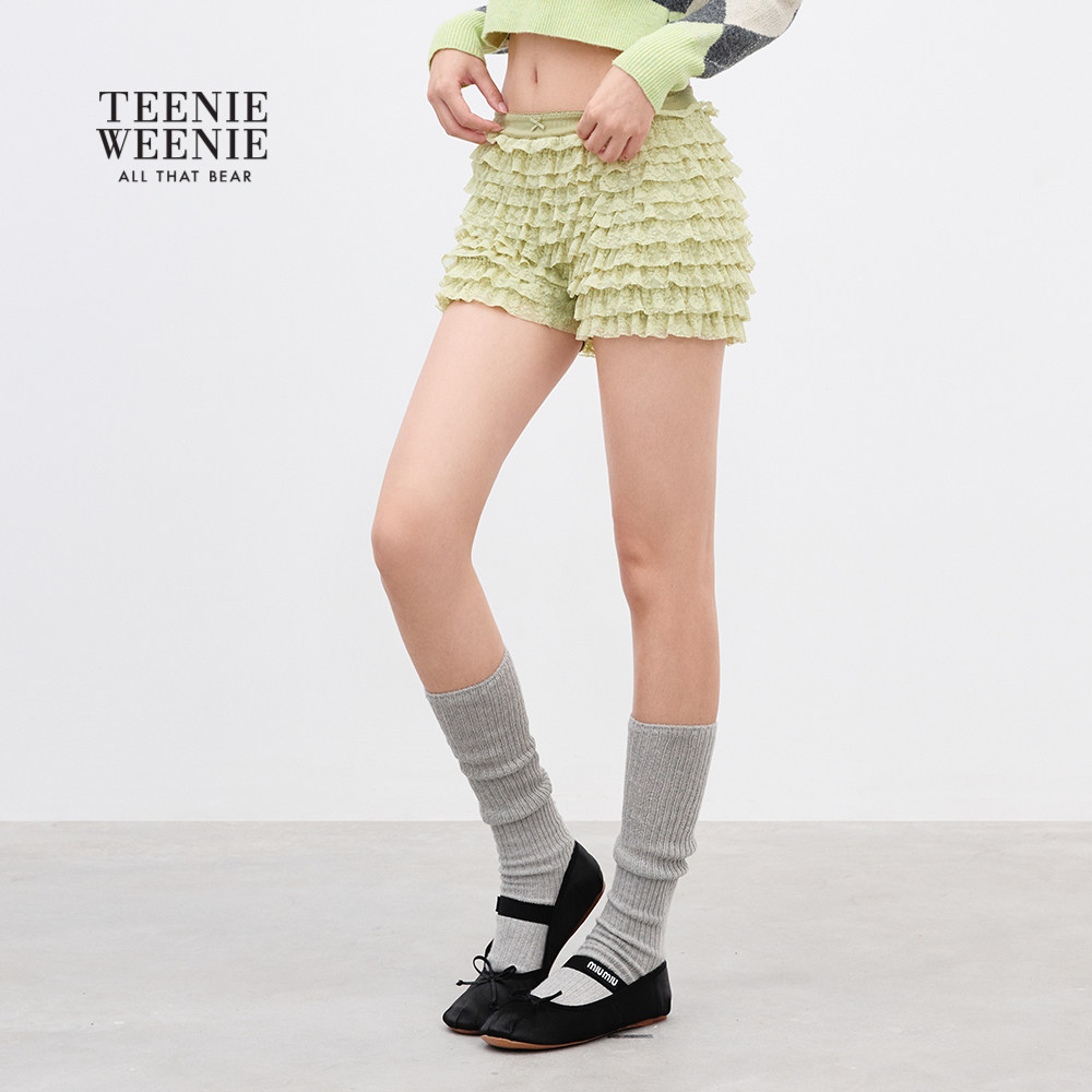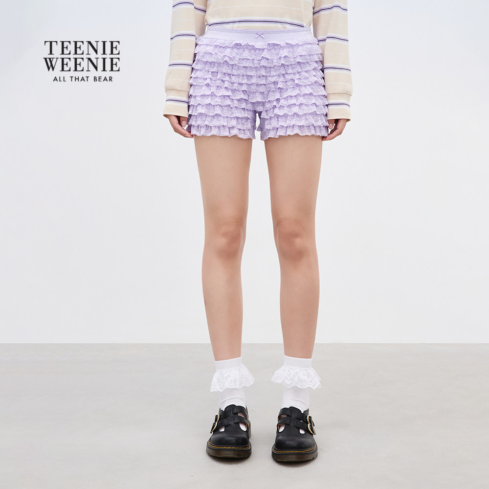 TEENIEWEENIE bearnova2025冬季新款女装甜美风蕾丝拼接蛋糕短裤