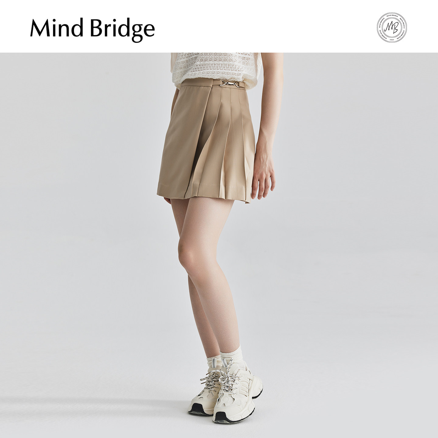 MB MindBridge不规则纯色通勤半身裙女士压褶短裙夏季设计感A字裙