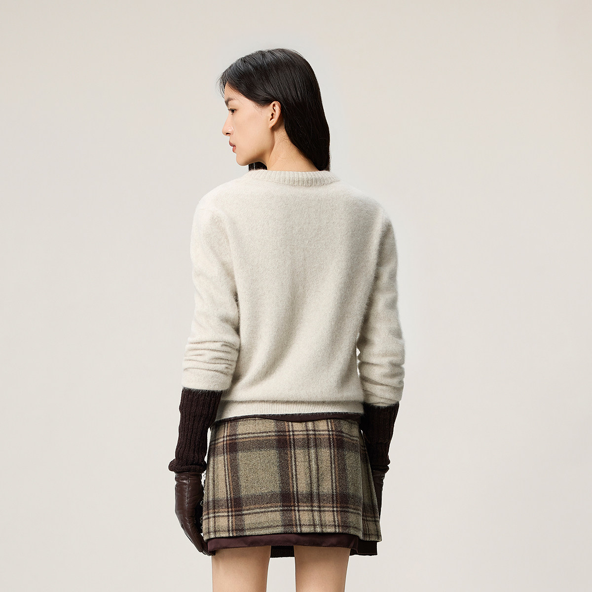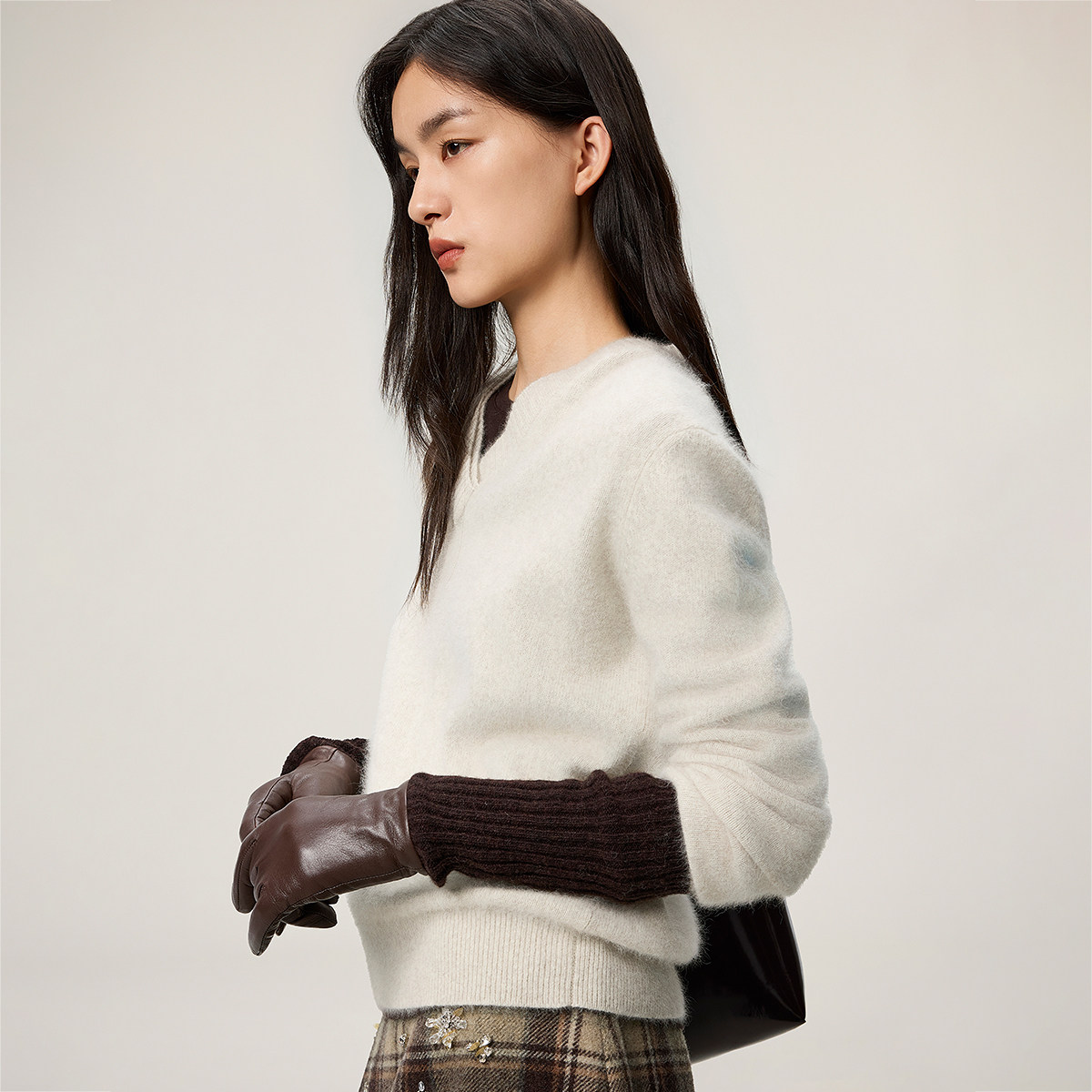 OCHIRLY欧时力 狐狸绒羊毛V领针织毛衣女保暖内搭2026春