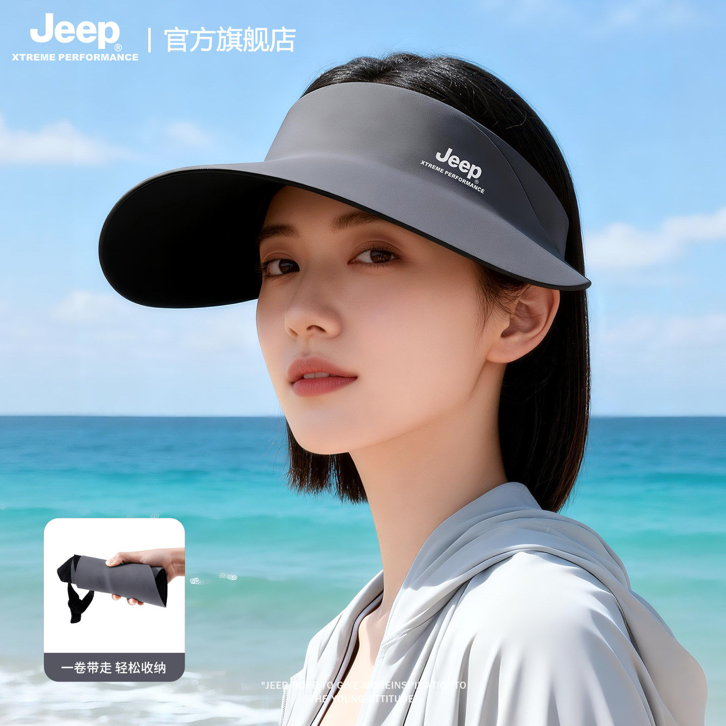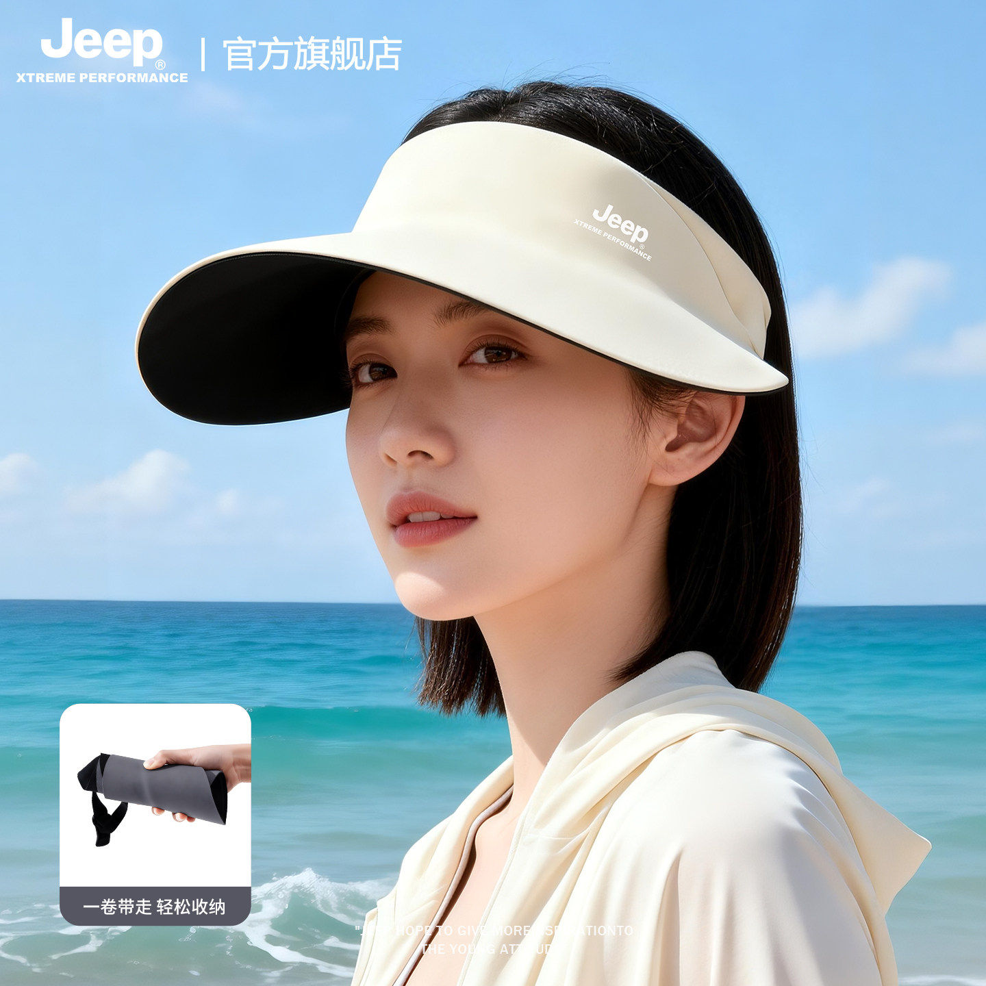 jeep吉普夏季女士空顶帽户外遮阳防紫外线轻薄透气网球防晒帽子女