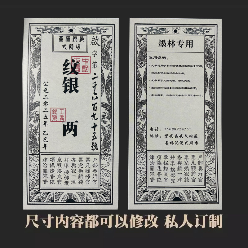 银票定制唐宋明清景区景点道具印刷设计复古代货币样式活动单页