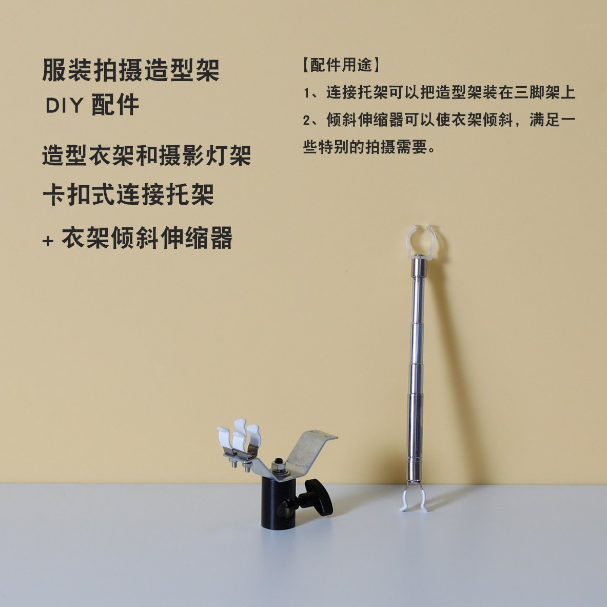 造型衣架和摄影灯架三脚架连接器 服装挂拍衣架道具 DIY配件