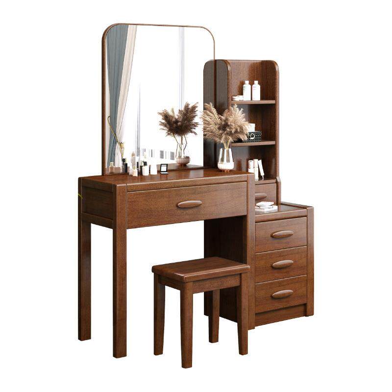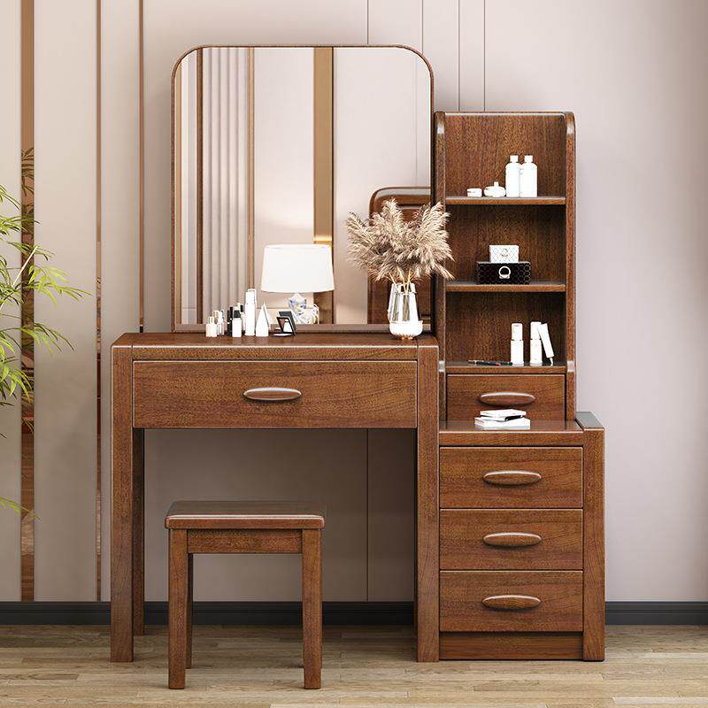 新中式实木梳妆台卧室收纳柜一体简约现代带镜抽屉小户型化妆桌子