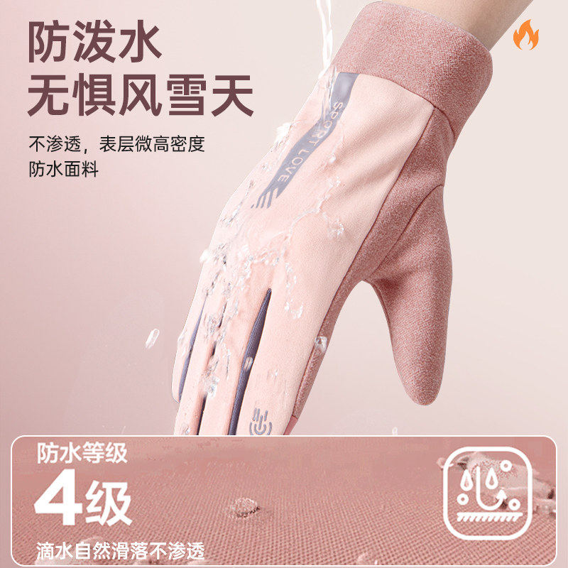 保暖手套冬天加绒加厚可爱麂皮绒女士骑行防寒骑车防风触屏冬季女