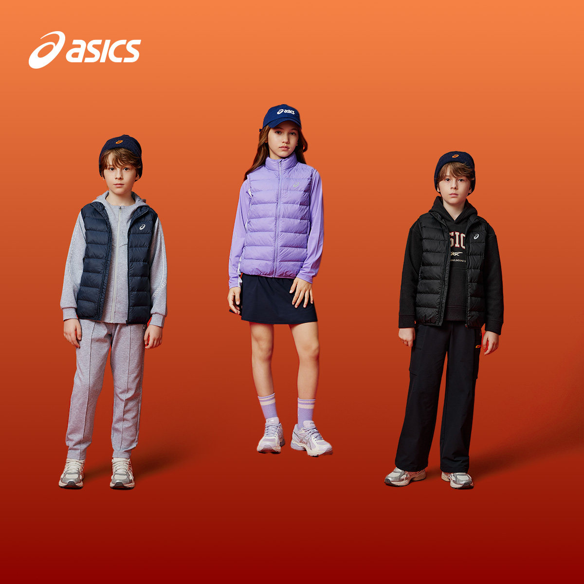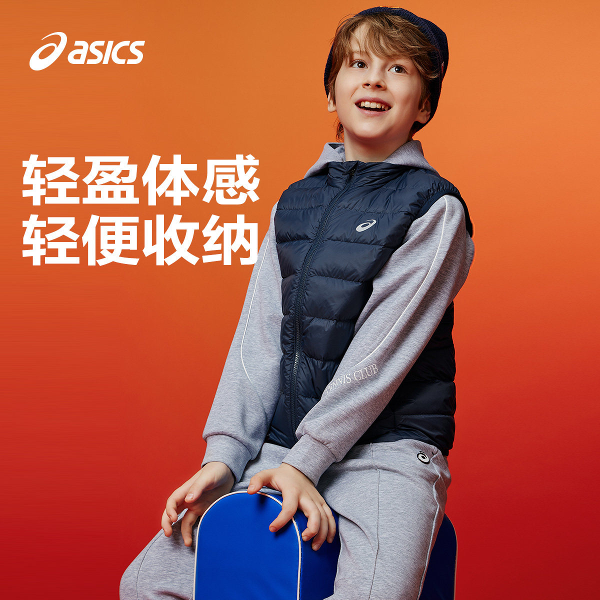 ASICS/亚瑟士童装25年冬季男女童三防科技羽绒马甲百搭轻量保暖