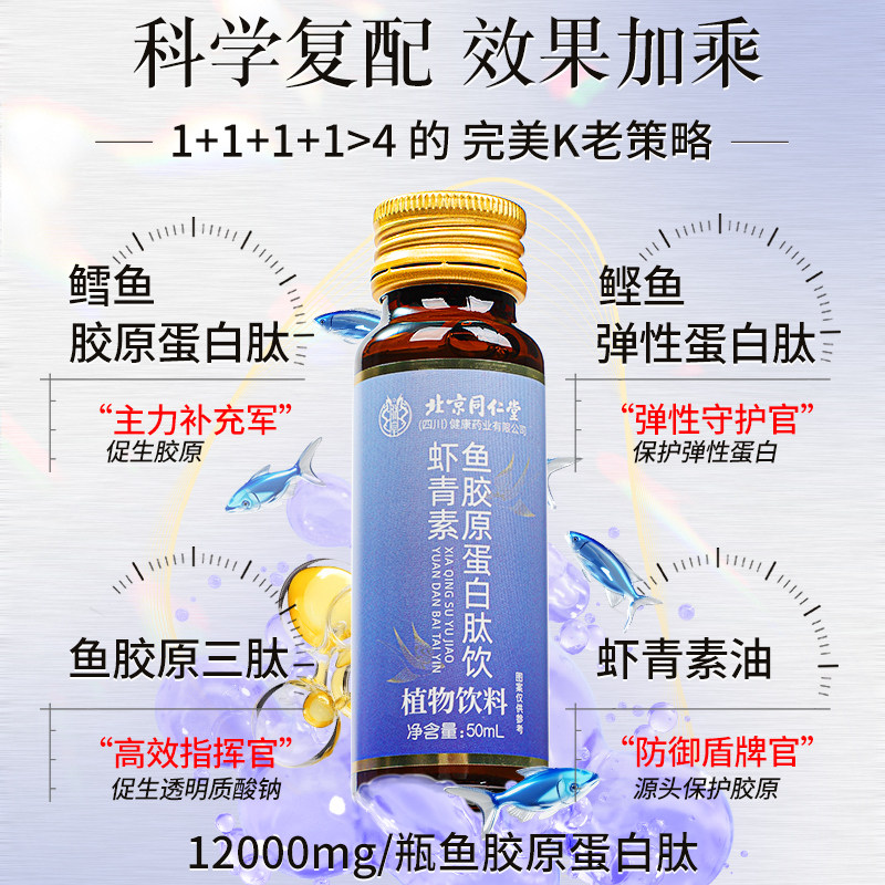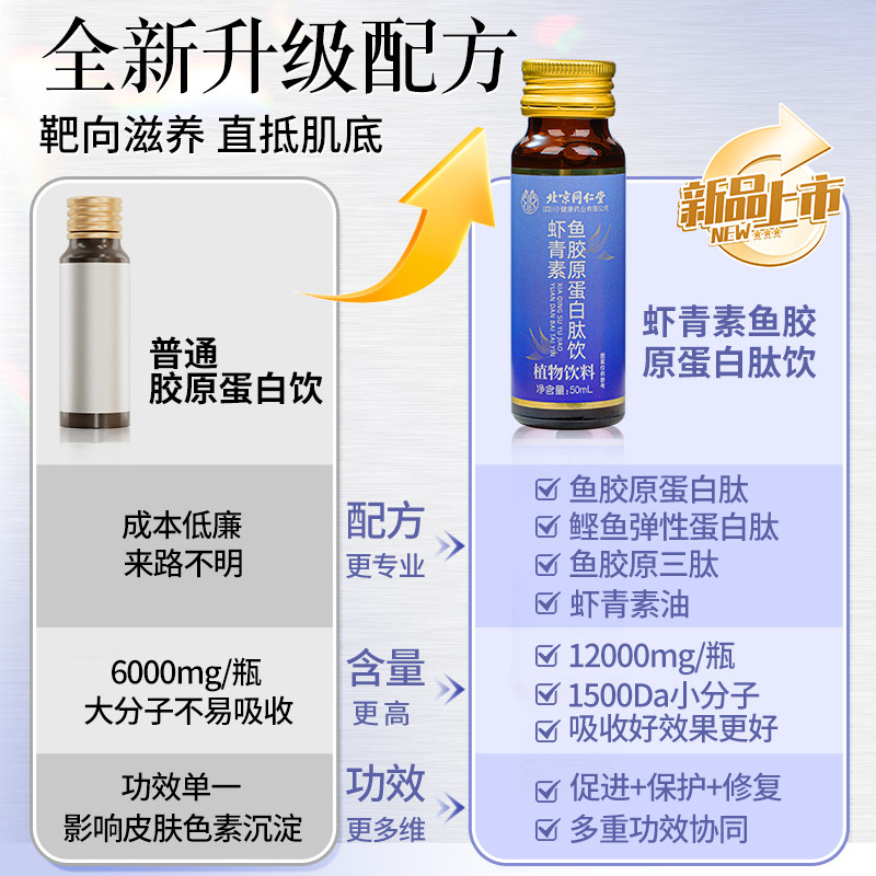 北京同仁堂鱼胶原蛋白肽饮虾青素抗皱紧致抗衰老官方旗舰店口服液