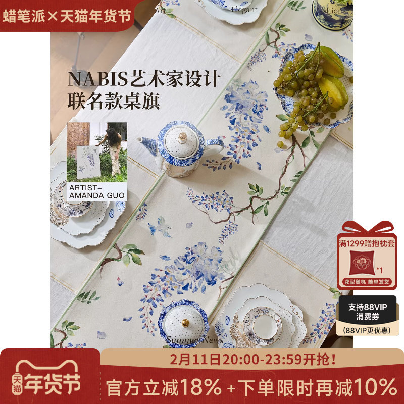 Nabis郭俊池联名|东方夏日系列紫藤桌旗法式斗柜茶几餐桌布茶旗W